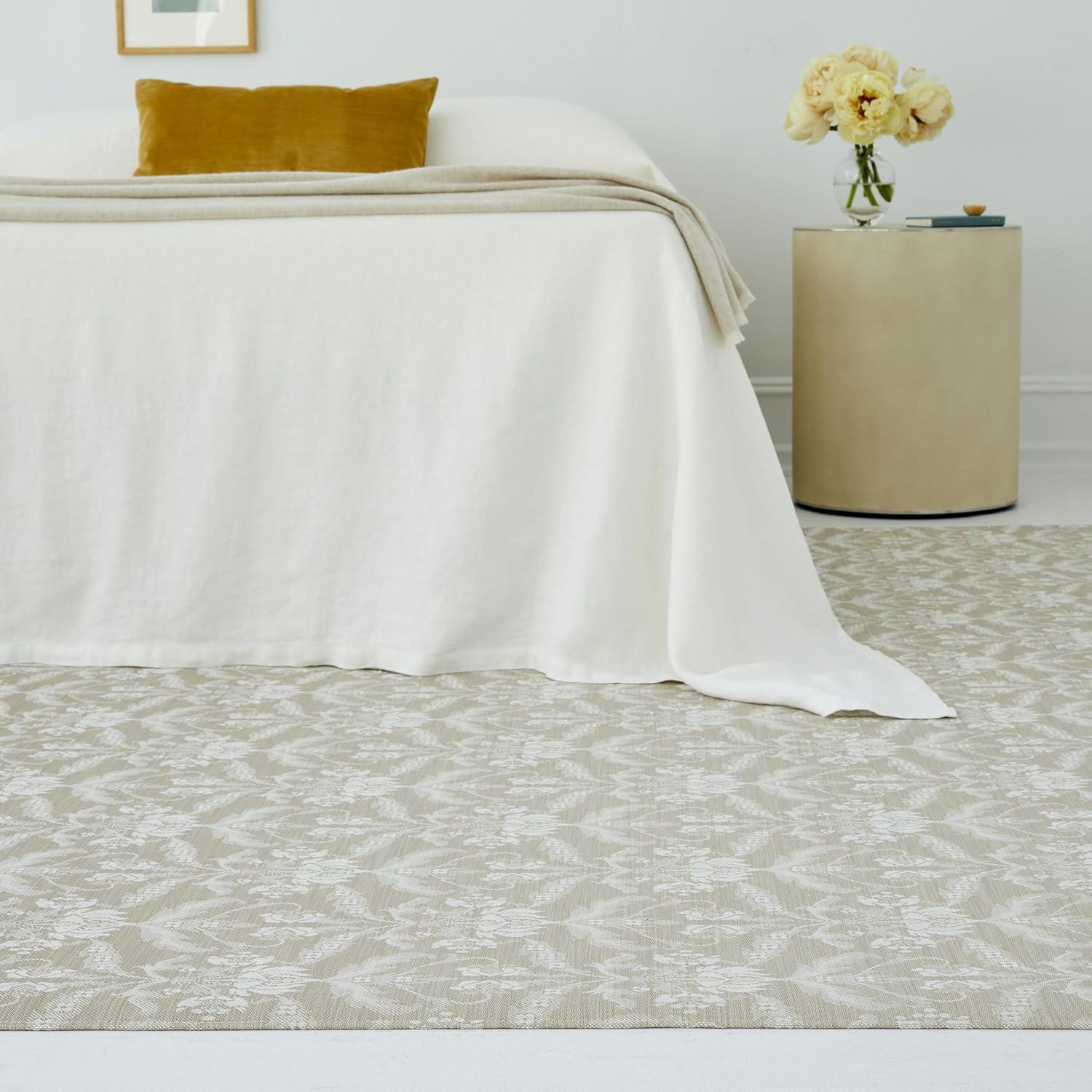 Chilewich Martha by Martha Stewart Damask Rug in Sea – 23″x36″ – Easy Care – Premium Indoor/Outdoor Floor Mat for Entry, Kitchen, Bath, Pool with Non-Slip Backing(Flax)