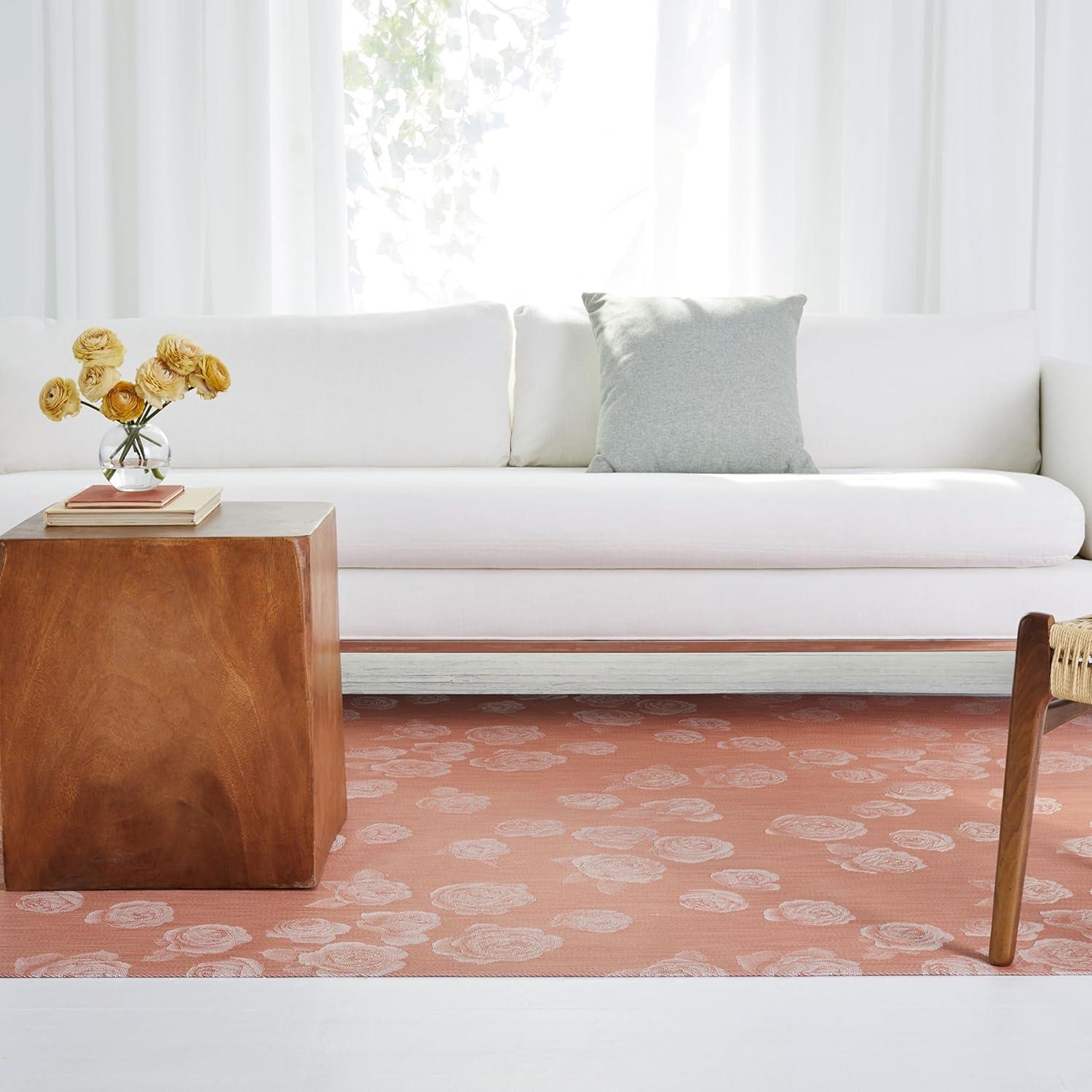 Chilewich Martha by Martha Stewart Rosette Rug in Flax - 23"x36" - Easy Care - Premium Indoor/Outdoor Floor Mat for Entry, Kitchen, Bath, Pool with Non-Slip Backing(Burnt Coral)