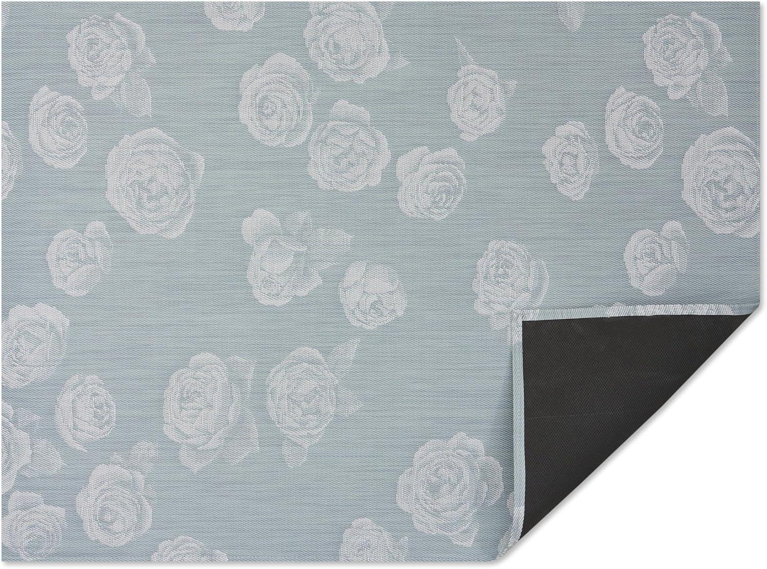 Chilewich Martha by Martha Stewart Rosette Rug in Flax - 23"x36" - Easy Care - Premium Indoor/Outdoor Floor Mat for Entry, Kitchen, Bath, Pool with Non-Slip Backing(Sea)
