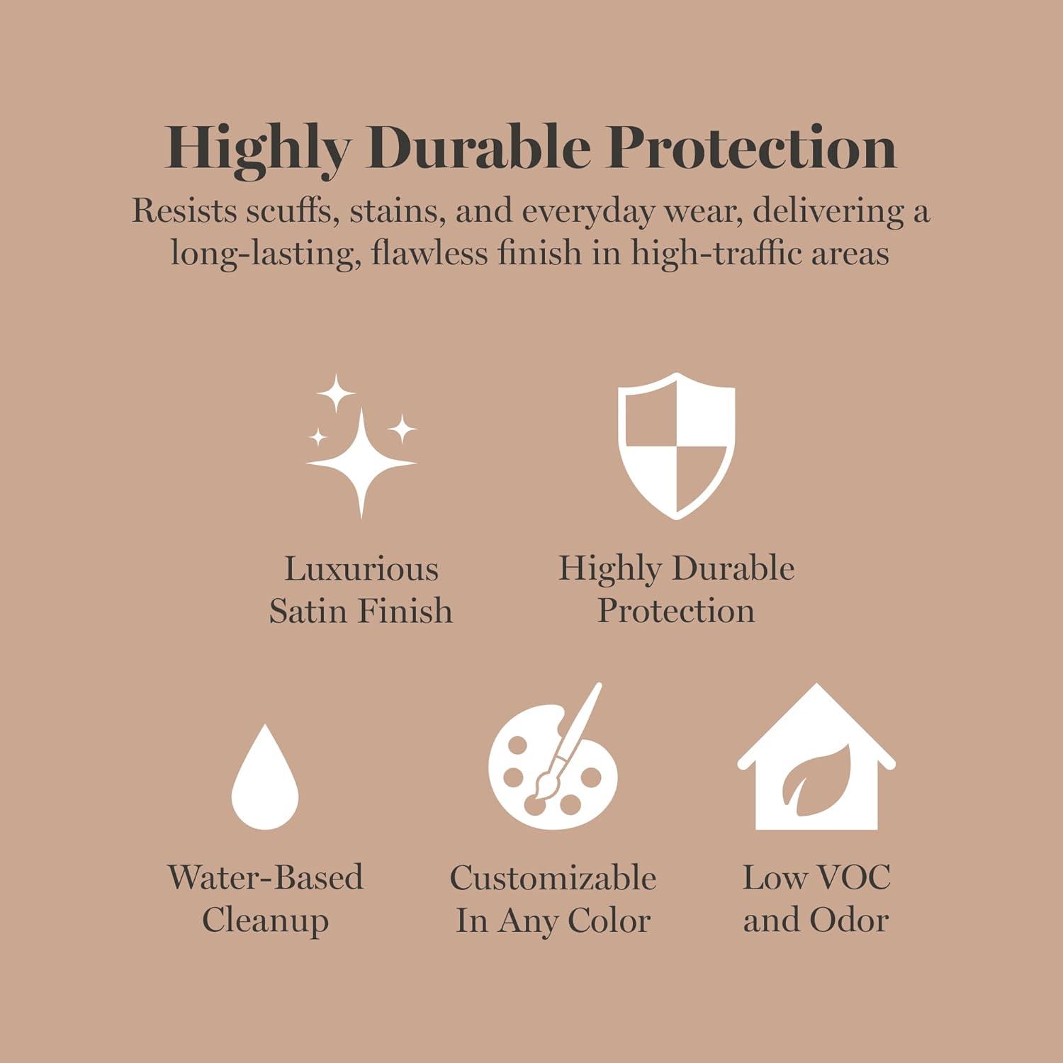 Brilliant Satin That Shines: This stain interior enamel delivers a smooth, vibrant finish that adds lasting shine and rich color depth to furniture, cabinetry, woodwork, trim, windows, doors, and other painted surfaces