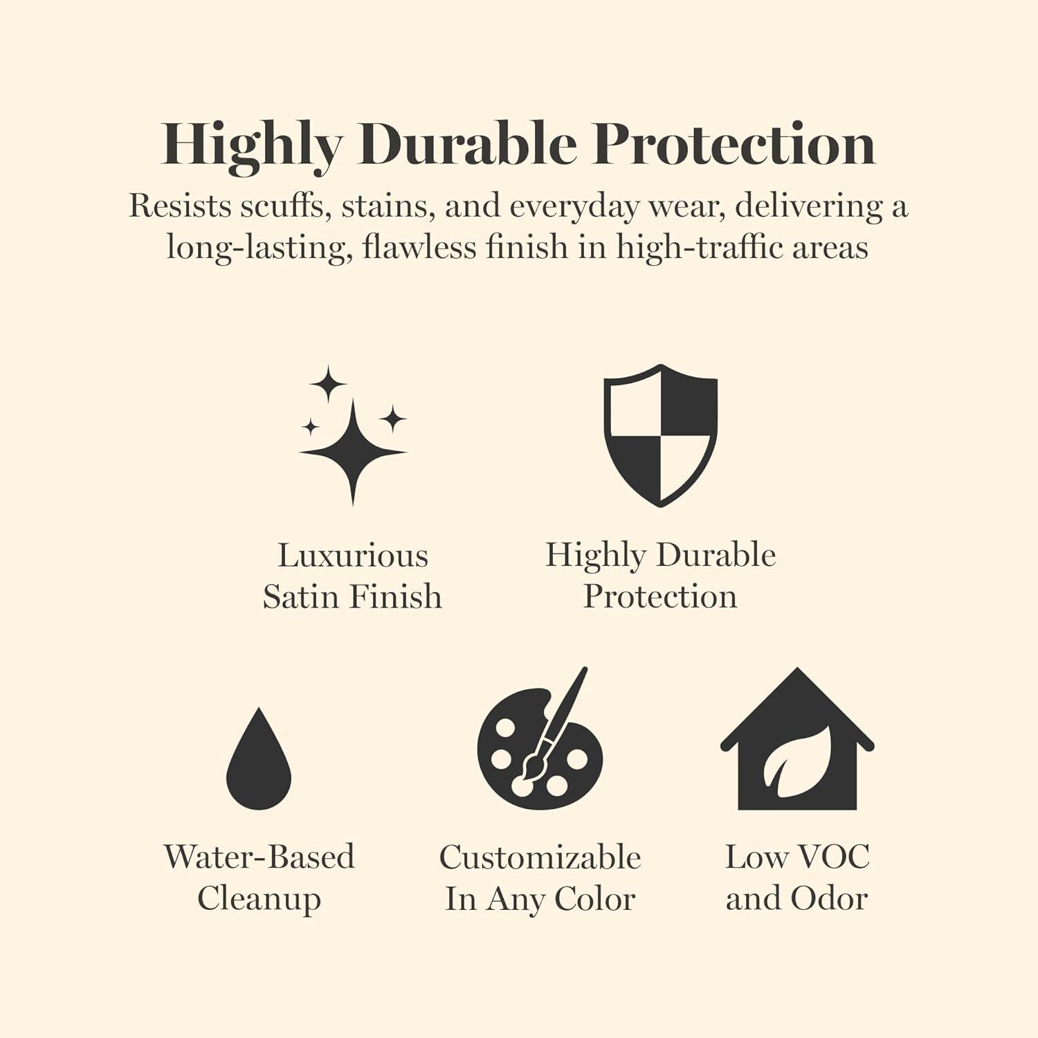 Highly Durable Protection: Formulated for busy kitchens and bathrooms, this durable enamel creates a scrubbable surface that resists scuffs, stains, and everyday wear, delivering a long-lasting, flawless finish in high-traffic areas