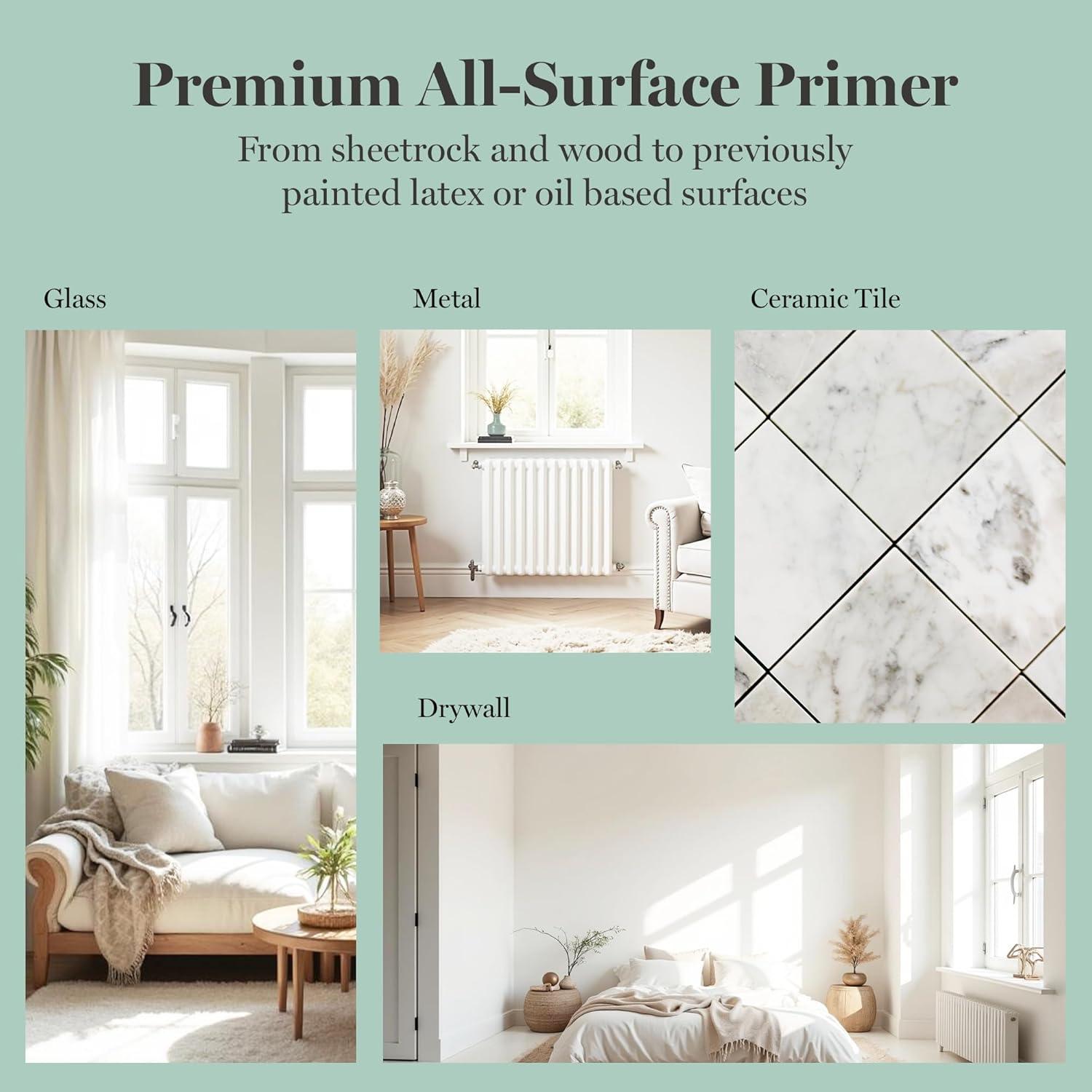 Works on Any Surface: From sheetrock and wood to previously painted latex or oil based surfaces, this primer creates the perfect base coat, enhancing paint adhesion on walls, furniture, and cabinets