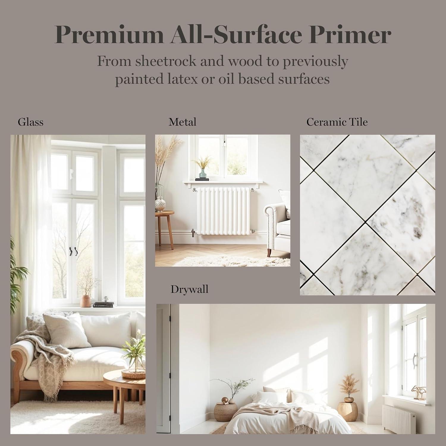 Works on Any Surface: From sheetrock and wood to previously painted latex or oil based surfaces, this primer creates the perfect base coat, enhancing paint adhesion on walls, furniture, and cabinets
