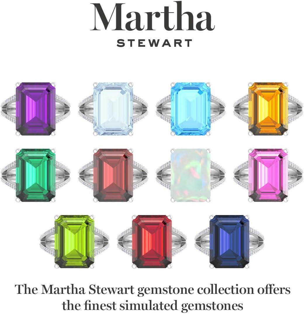 Martha Stewart 10 1/4 Carat Emerald Cut Gemstone Ring with Lab Grown Diamonds in Sterling Silver, Choose Your Gemstone(Aquamarine)