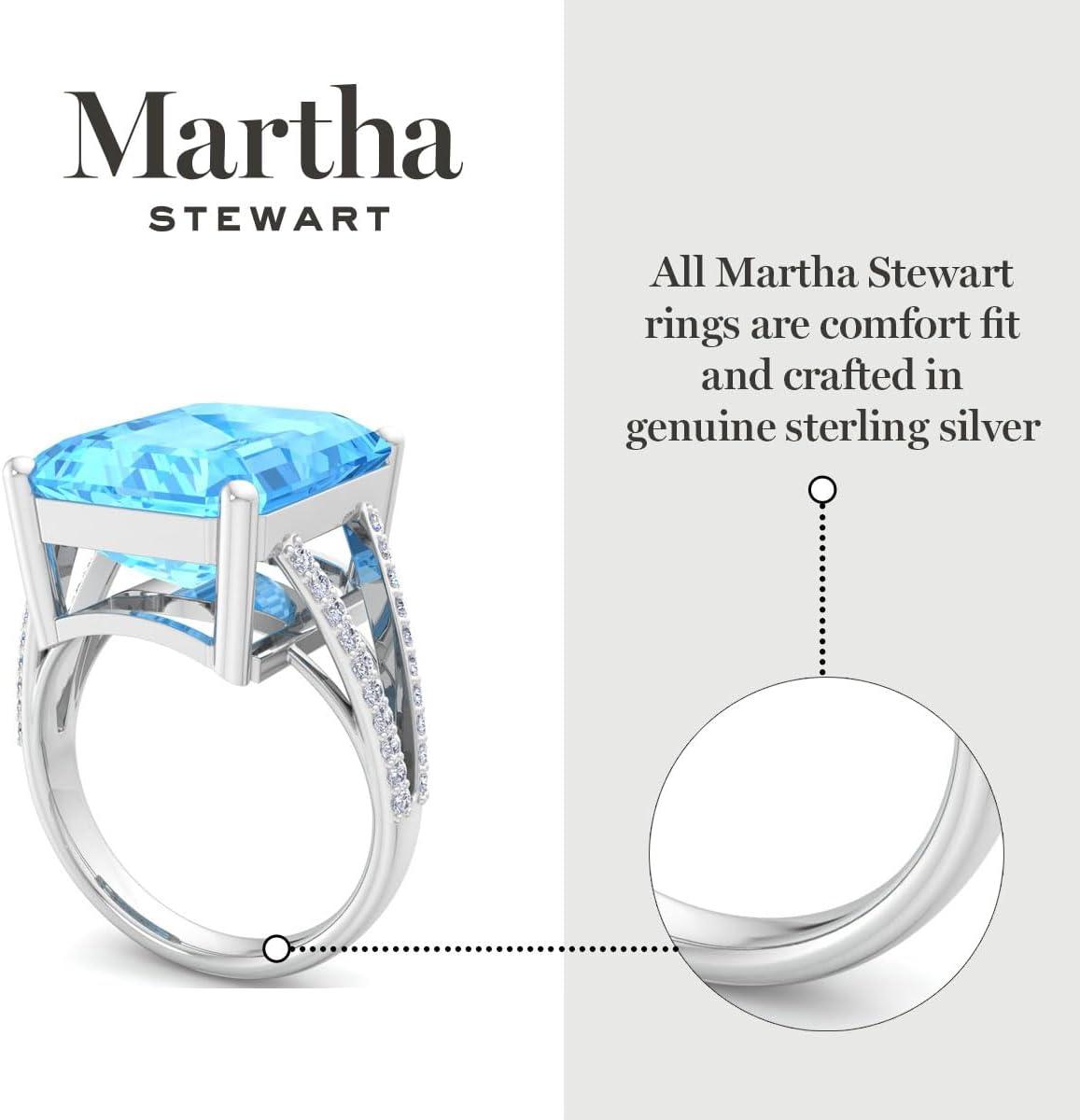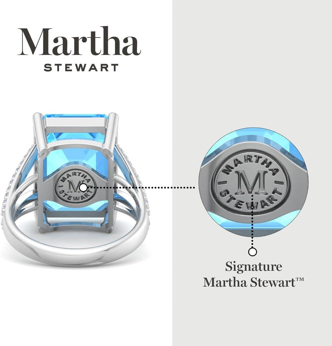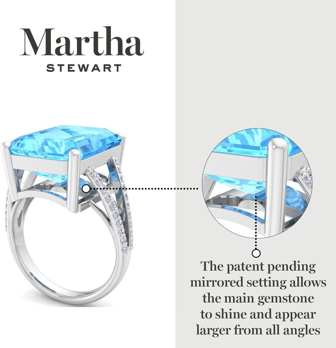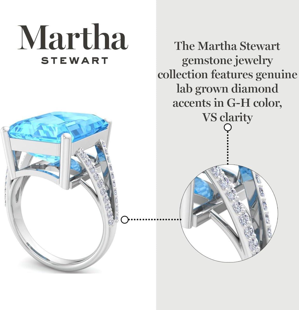 imageMartha Stewart 10 14 Carat Emerald Cut Gemstone Ring with Lab Grown Diamonds in Sterling Silver Choose Your GemstoneBlue Topaz