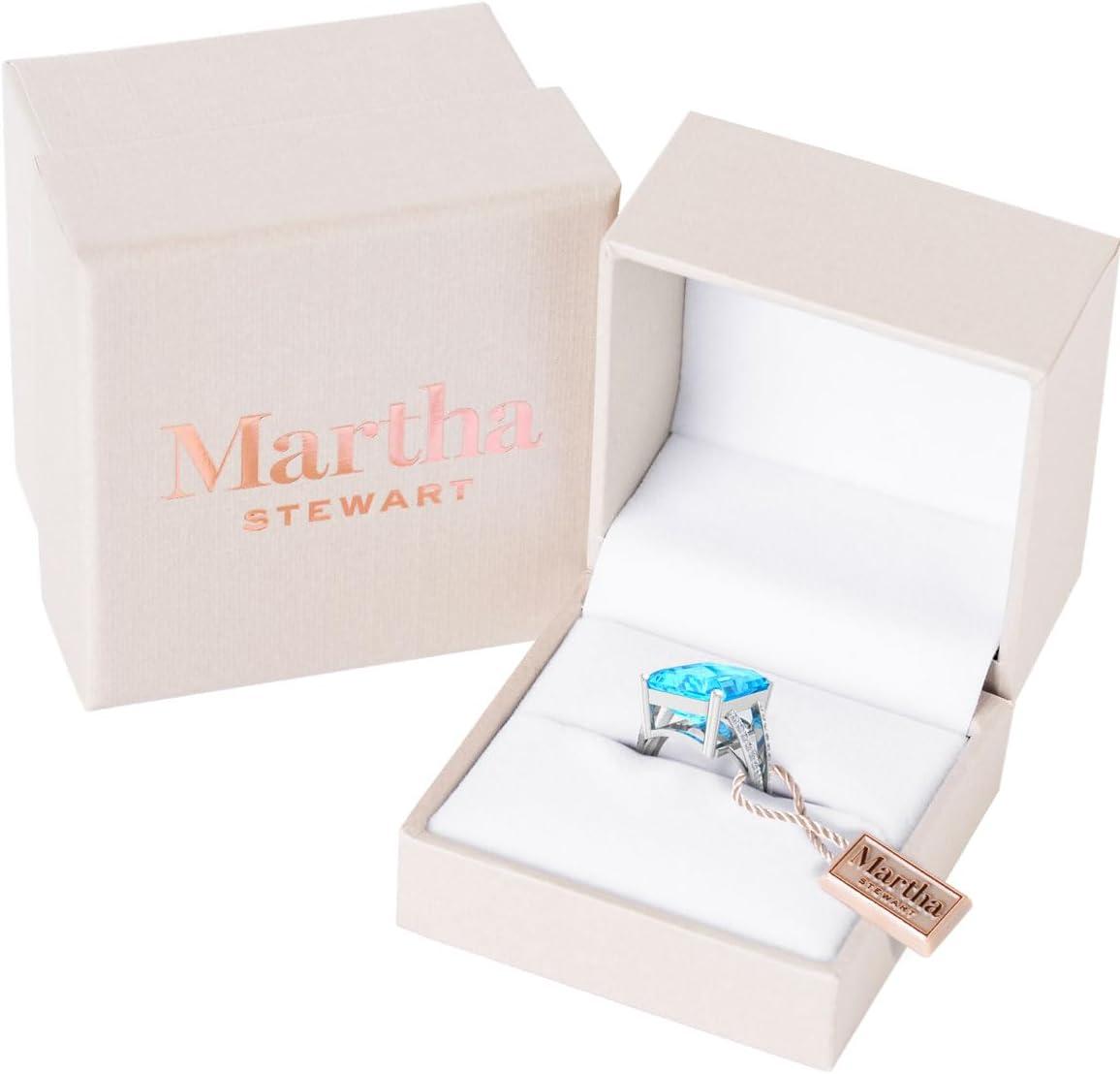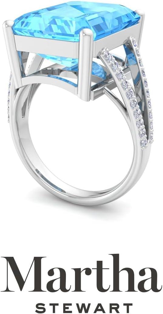 Martha Stewart 10 1/4 Carat Emerald Cut Gemstone Ring with Lab Grown Diamonds in Sterling Silver, Choose Your Gemstone(Blue Topaz)