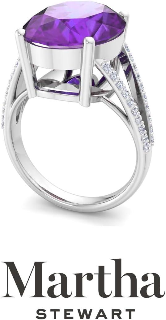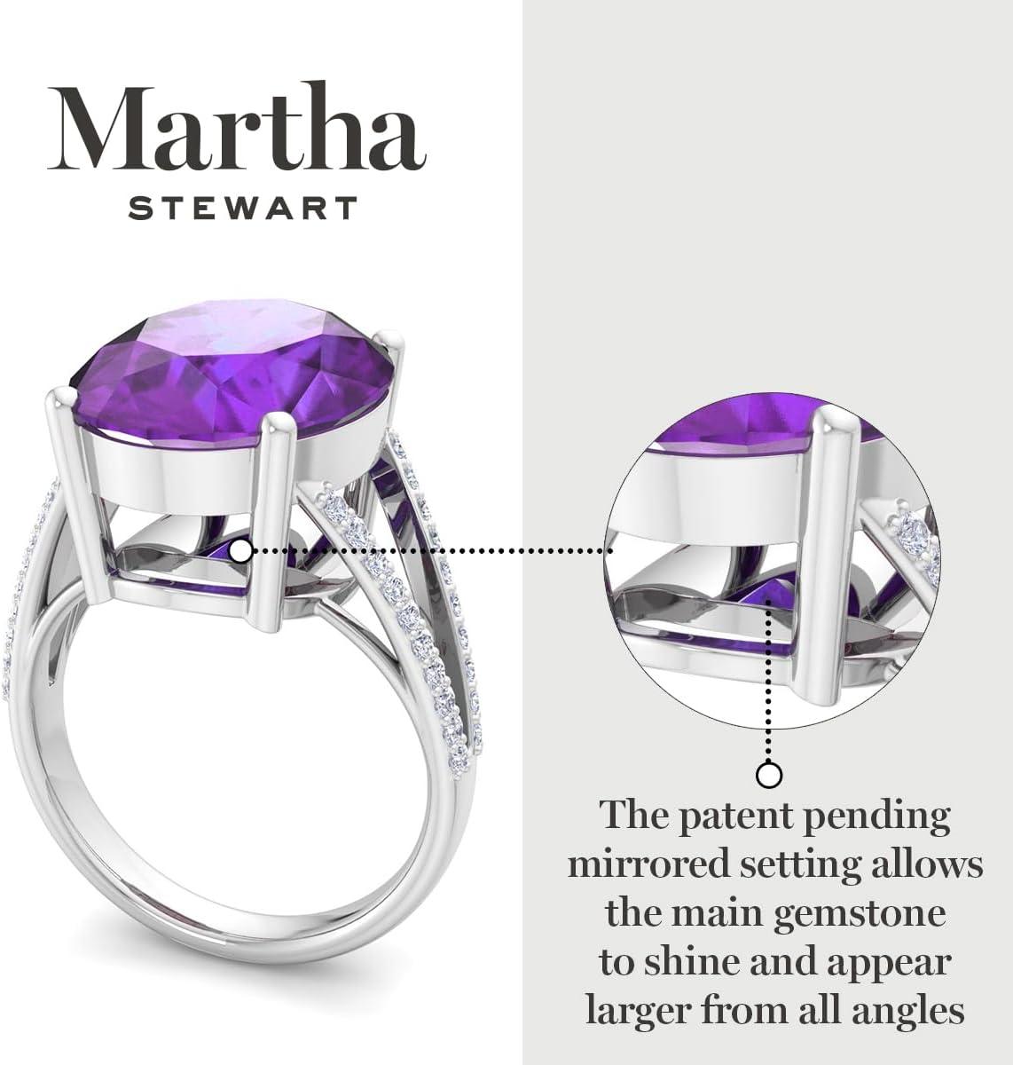 Martha Stewart 10 1/4 Carat Oval Shape Gemstone Ring with Lab Grown Diamonds in Sterling Silver, Cho(Amethyst)