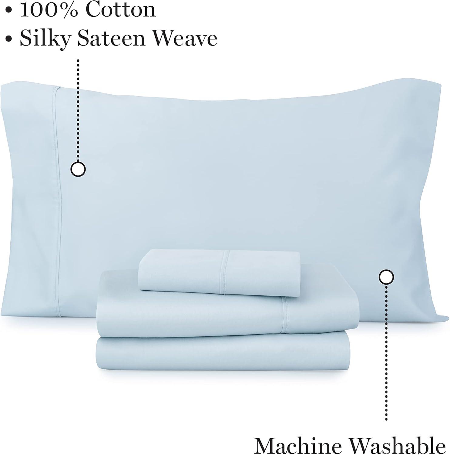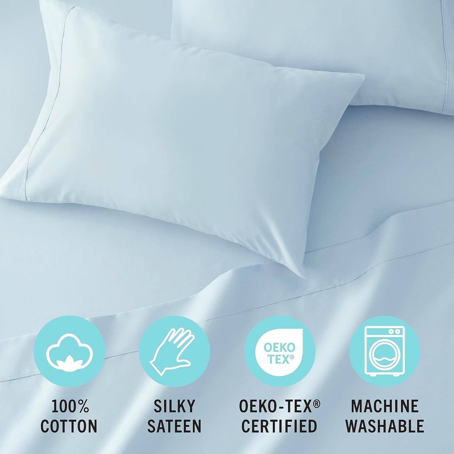 INSPIRE FUNCTIONAL SLEEP with 100% cotton sheets. Cotton is known for naturally offering a soft and breathable experience. Enjoy a silky sateen weave for a smooth texture and subtle sheen, adding just the right amount of luxury. This sheet set is mindfully packaged in a reusable plastic-free fabric bag that is great for zero-waste storage and organization such as storing small items in luggage. Create more looks to love with stylish, functional layers from Martha Stewart's Amazon Shop.