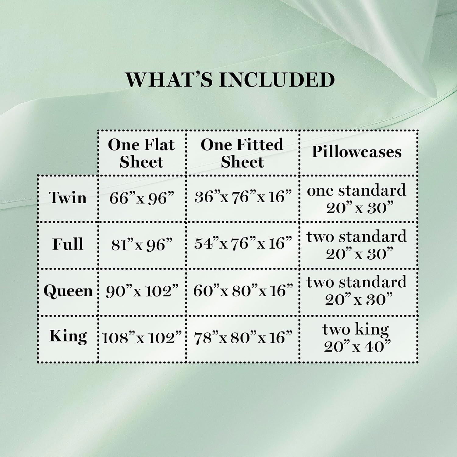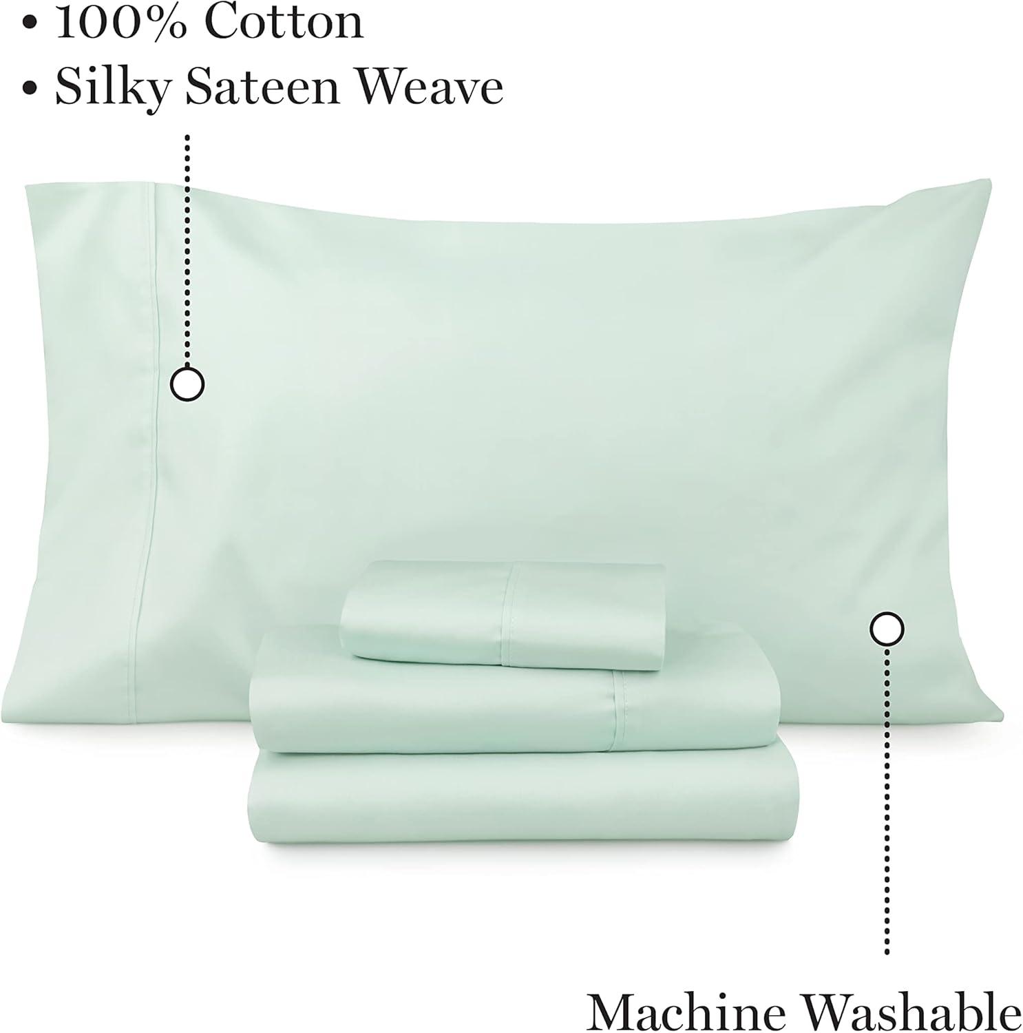 Martha Stewart 100% Cotton Queen Sheets Set - 4 Piece, Soft, Smooth, Durable, Easy Care, 16" Deep Pocket Sheets, Bedding Sheets, Sateen Sheets, 1 Flat, 1 Fitted, 2 Pillowcases, Dorm Essential, Yellow(Mint)