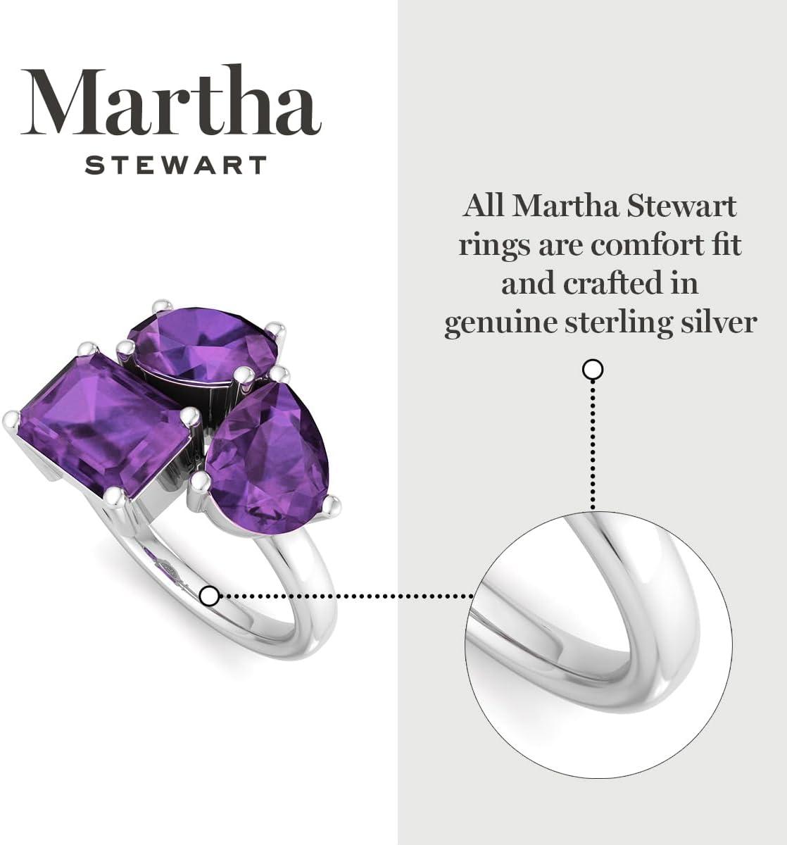 Martha Stewart 3 3/4 Carat Three Stone Gemstone Ring for Women in Sterling Silver, Gemstone Jewelry For Women(Option 1)