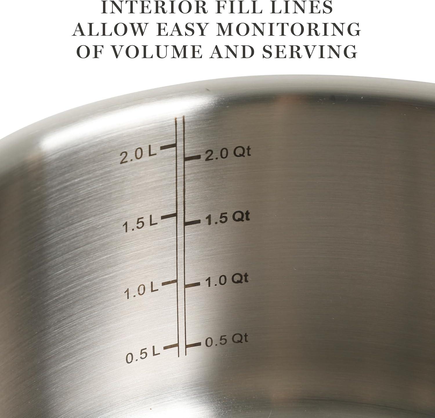 Interior measurements help indicate the right ratio and servings, whether you are preparing for an easy-going group or a hungry crowd. Durable stainless steel rivets attach the cast handles securely for strength and long-lasting use. The handles feature a special Y-shape to promote heat diffusion and help keep them cool to the touch. They also offer a comfortable and confident grip when lifting, transferring, or serving from oven to table. Suitable to use on gas, electric, halogen, ceramic, glass, and induction stoves, this beautifully-crafted sauté pan will bring style and performance to any kitchen. Oven safe up to 480°F. Dishwasher safe, hand wash recommended.