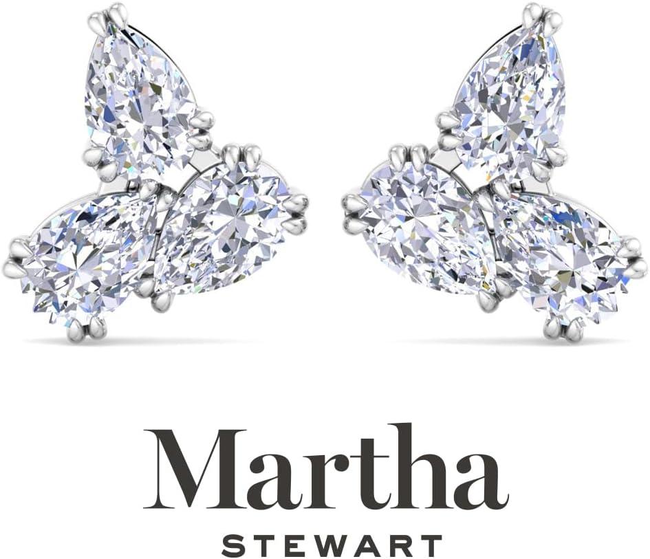 Martha Stewart 3 Carat Lab Grown Diamond Cluster Stud Earrings, Pear Shapes in 14K Gold(white-gold)