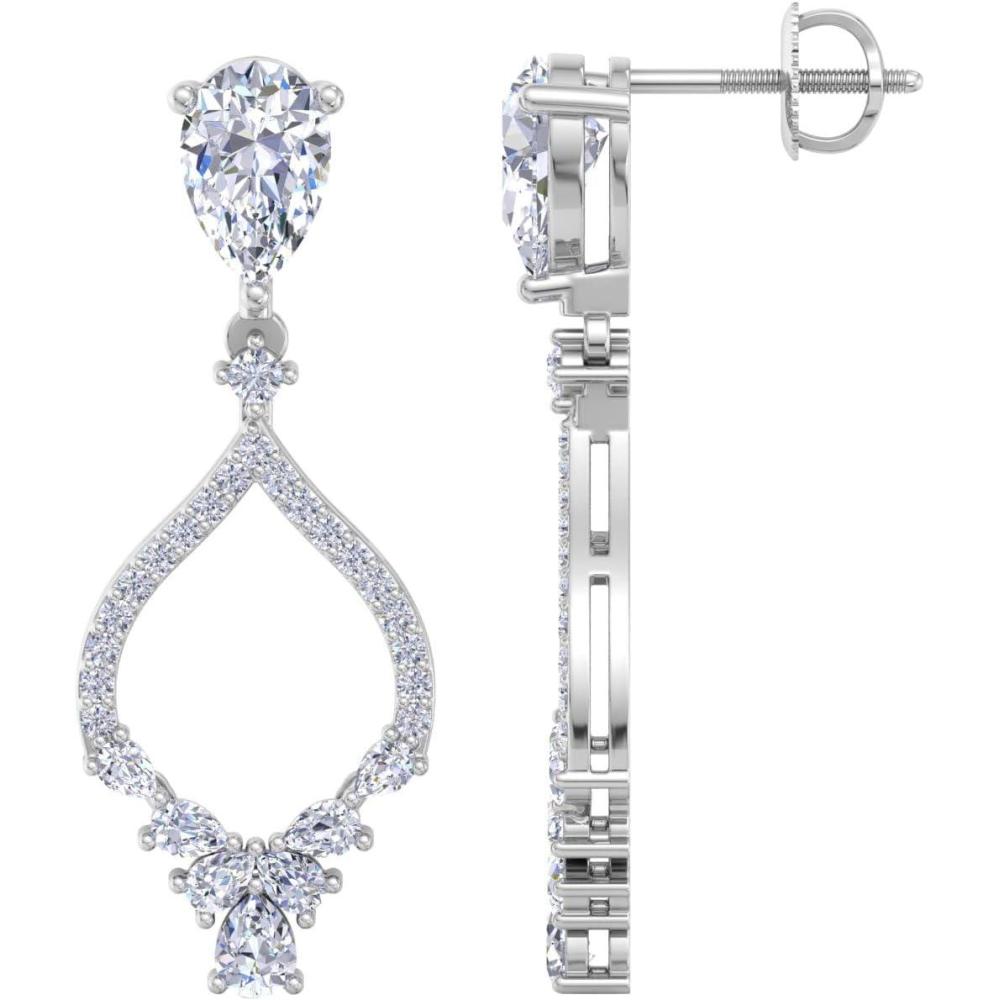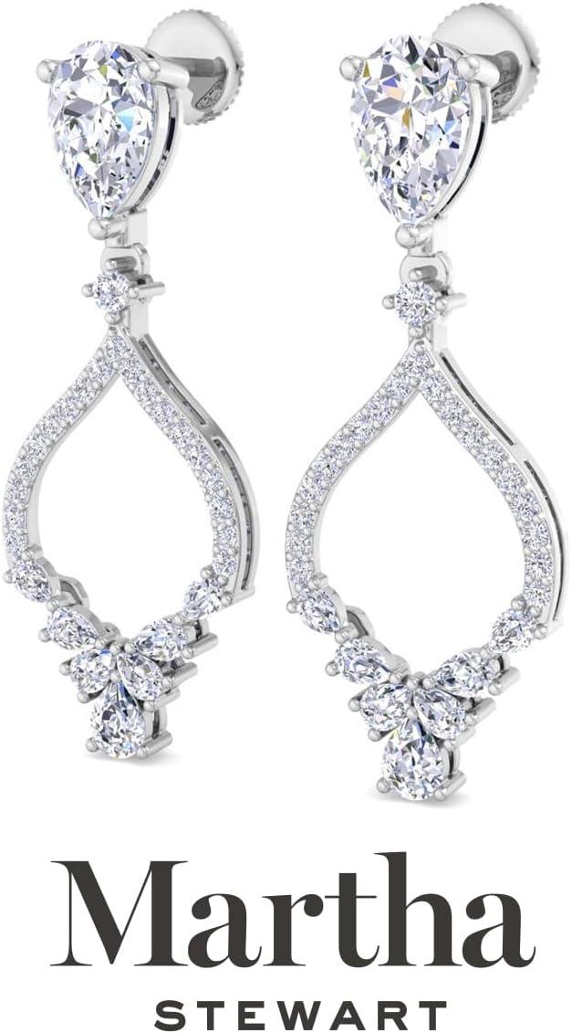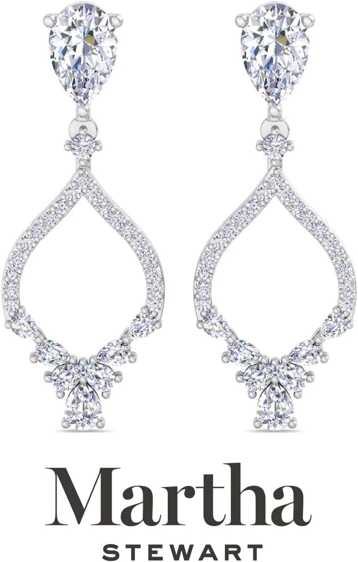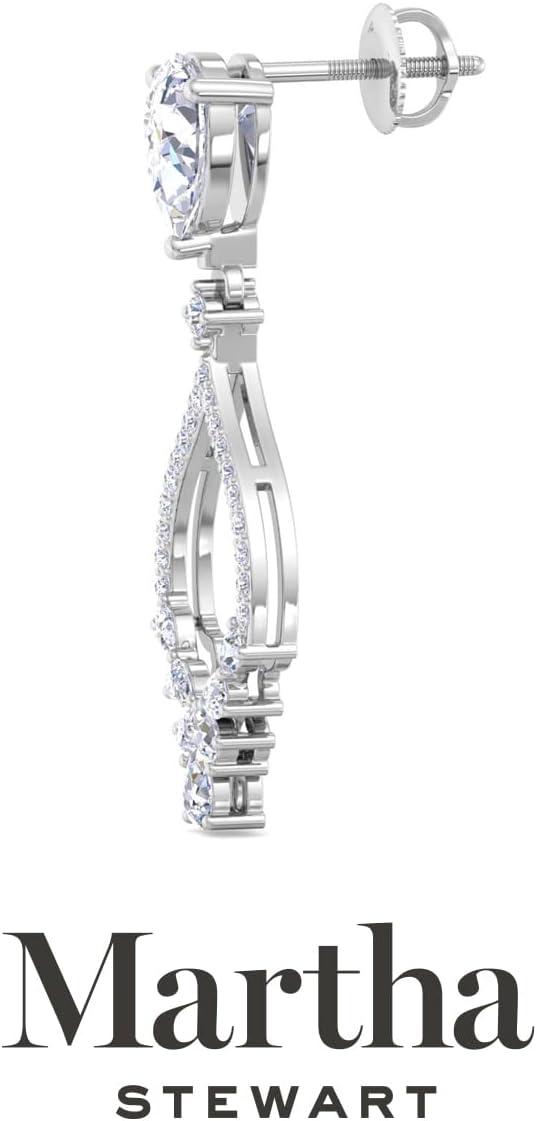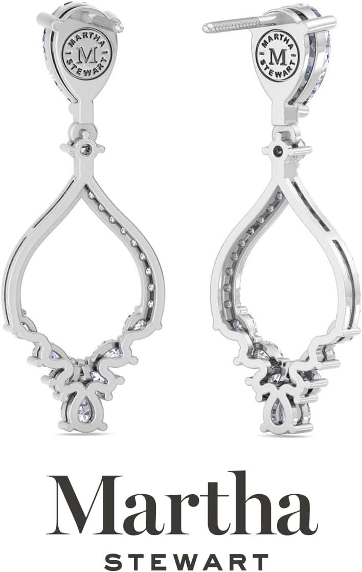 Showcasing class, style and timeless sophistication, the Martha Stewart fine jewelry collection is here to be celebrated. These Martha Stewart lab grown diamond earrings feature 40 round shape lab grown diamonds in G-H color, VS clarity and 16 pear shape lab grown diamonds including two 1 carat diamonds. Total carat weight is 2 carats. These earrings are available in 14 karat white or yellow gold and have post with friction backs. These earrings dangle down 1 1/4 inches! Whether worn for a special event or to enhance everyday elegance, these earrings are sure to become cherished heirlooms. Martha Stewart’s attention to detail and dedication to quality shine through in every piece, making this collection a celebration of refined craftsmanship and timeless beauty.