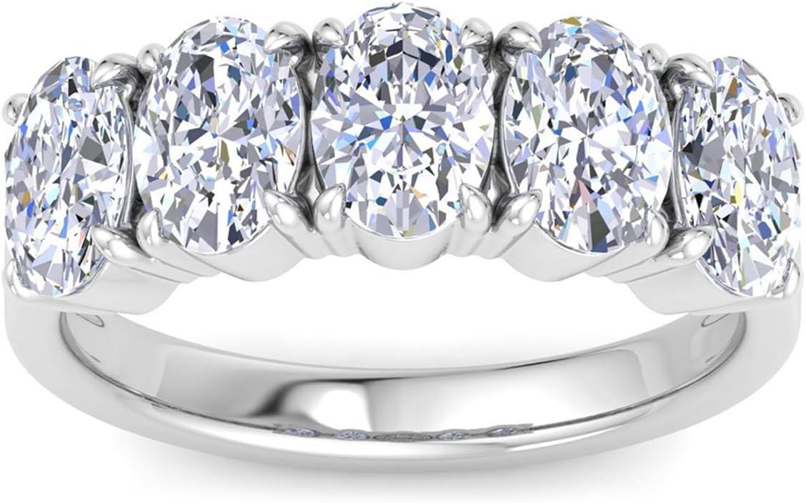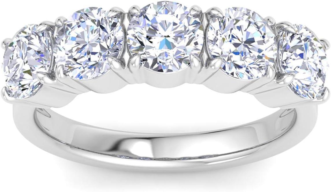 Martha Stewart 3 Carat Lab Grown Diamond Ring, Five Stone Diamond Engagement Ring in 14 Karat Gold(white-gold)