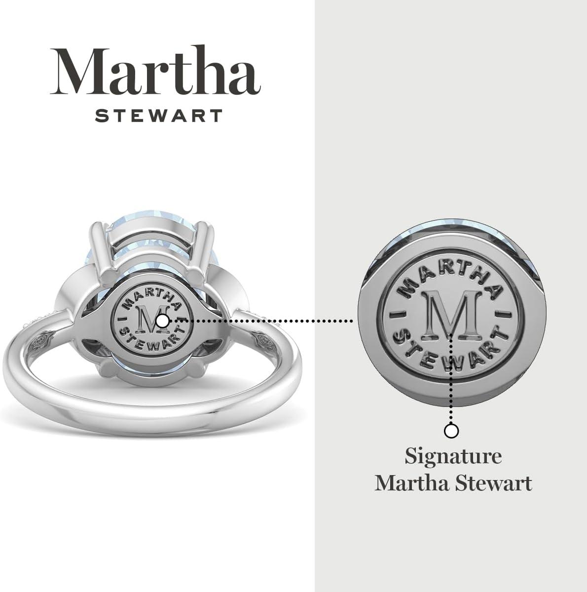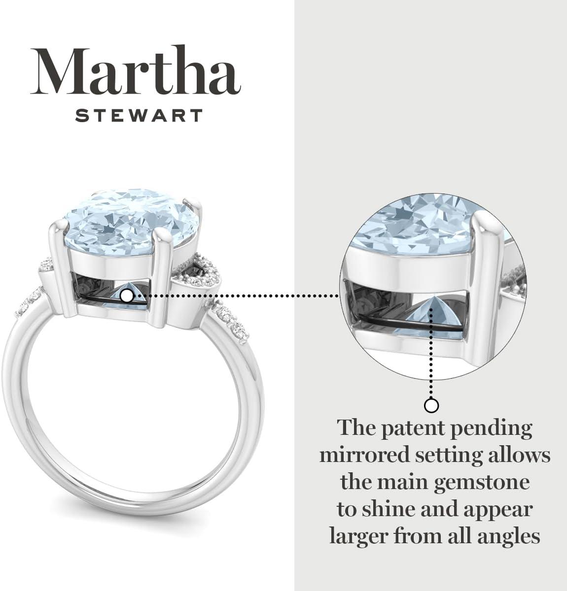Martha Stewart 4 1/2 Carat Oval Shape Gemstone Ring with Lab Grown Diamonds in Sterling Silver, Choose Your Gemstone(Aquamarine)
