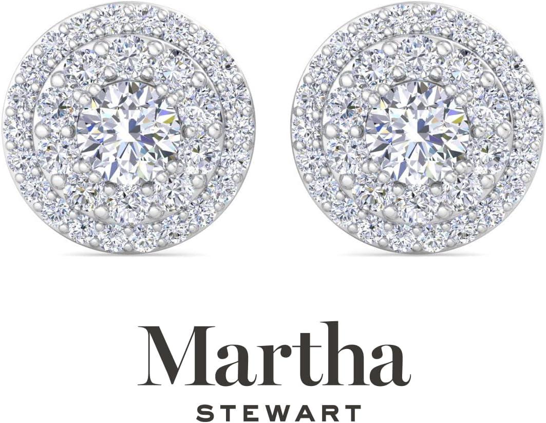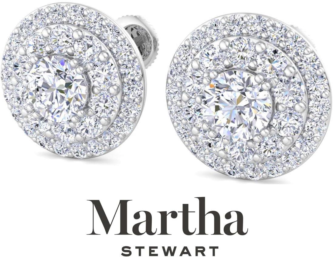Martha Stewart 4 Carat Lab Grown Diamond Halo Stud Earrings In 14K Gold, Lab Grown Diamond Earrings for Women(white-gold)
