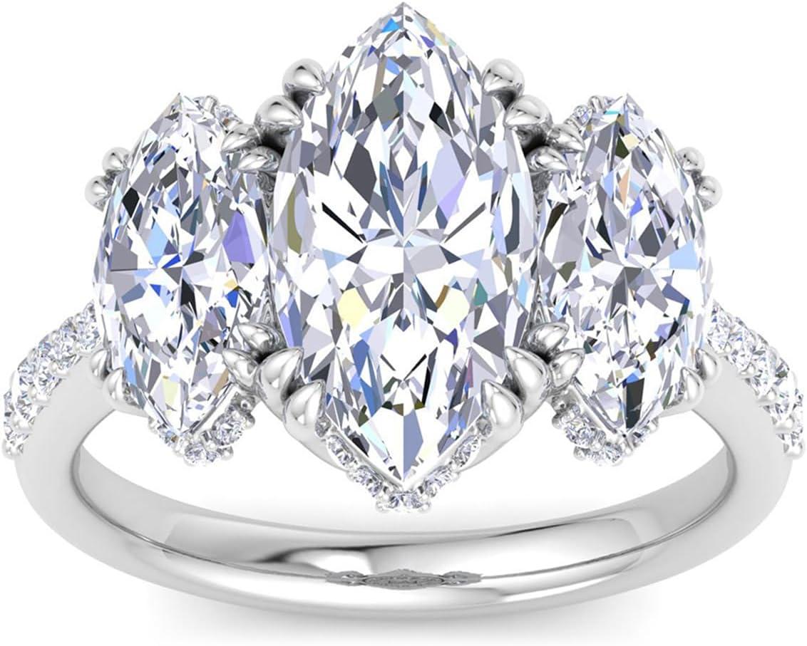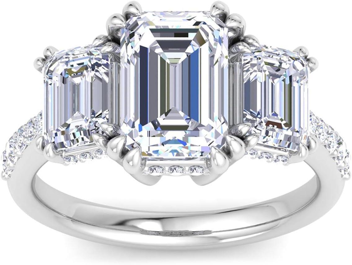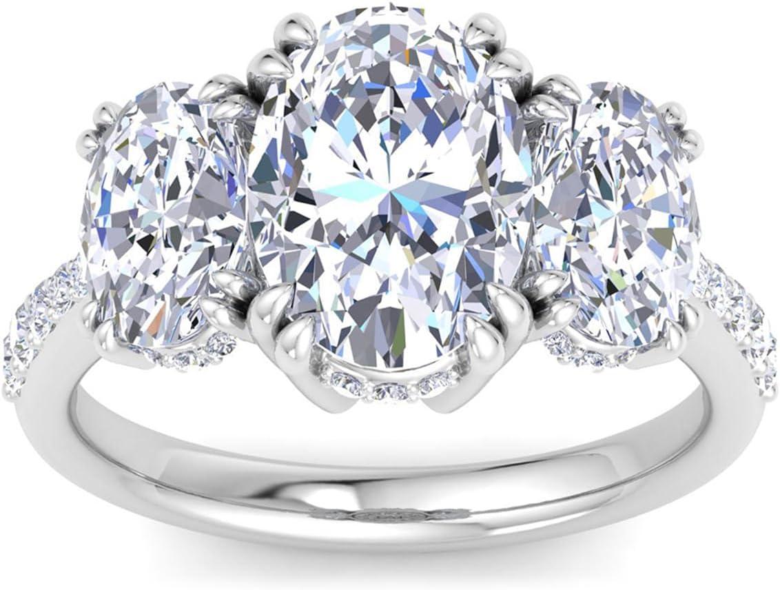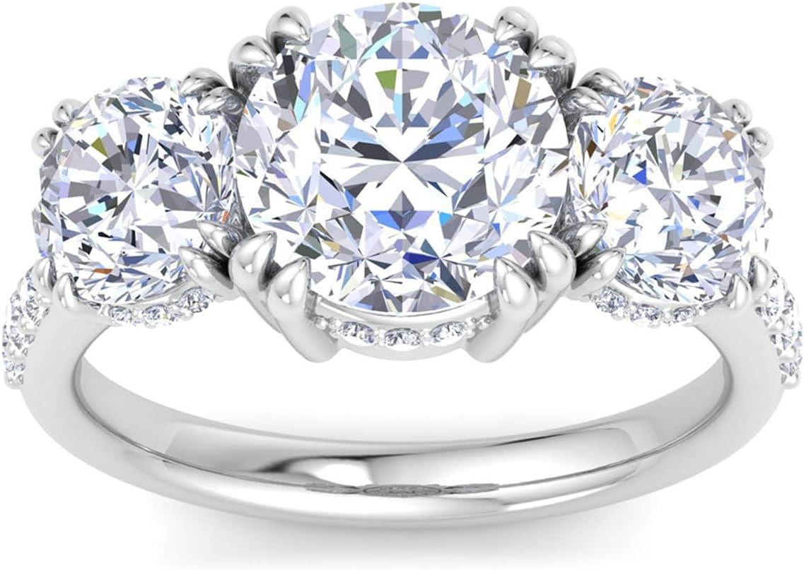 Martha Stewart 5 1/2 Carat Lab Grown Diamond Ring, Three Stone Plus Diamond Engagement Ring in 14 Karat Gold(white-gold)
