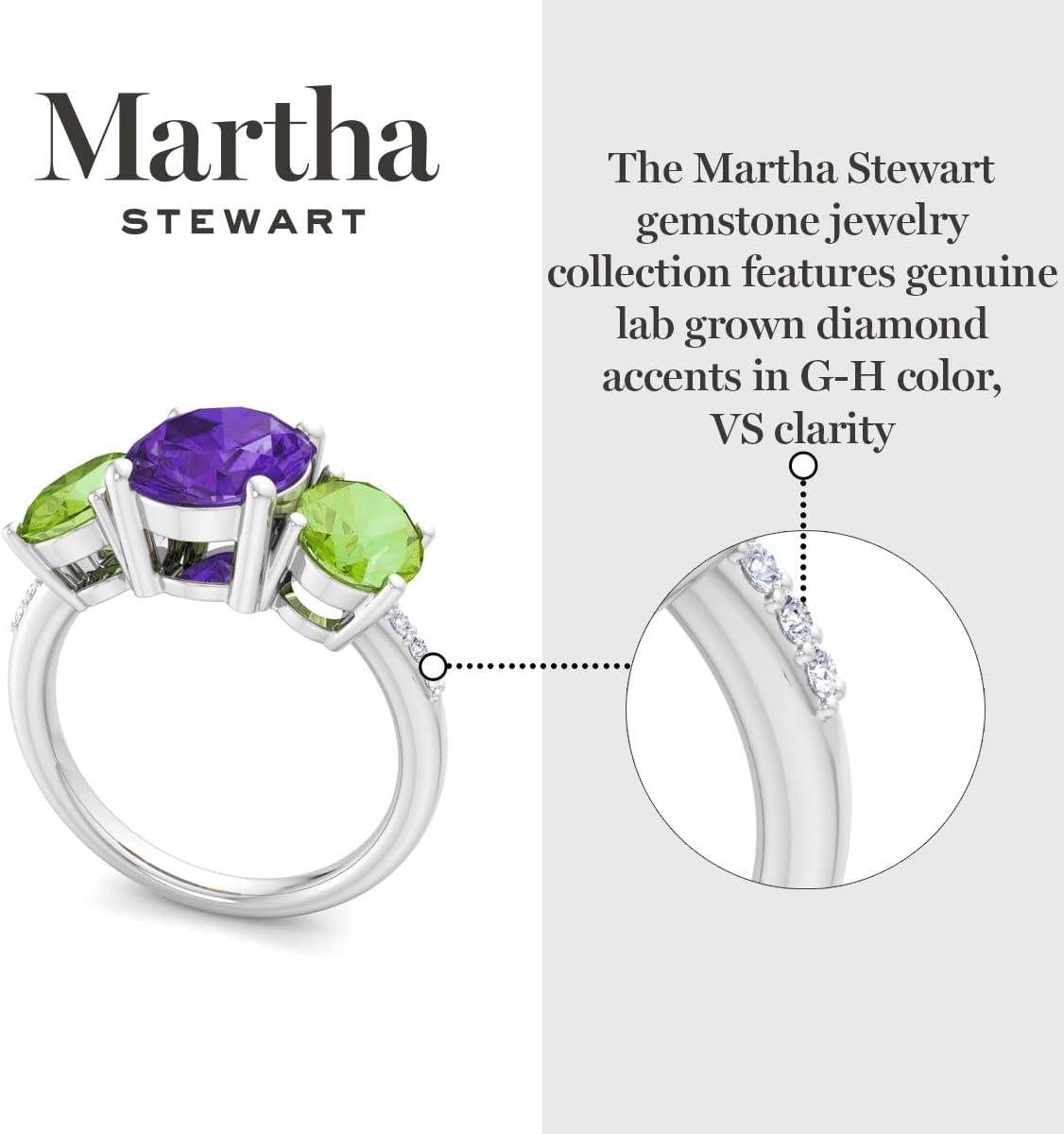 Martha Stewart 5 Carat Oval Shape Gemstone Three Stone Ring with Lab Grown Diamonds in Sterling Silver, Choose Your Gemstone(Option 2)