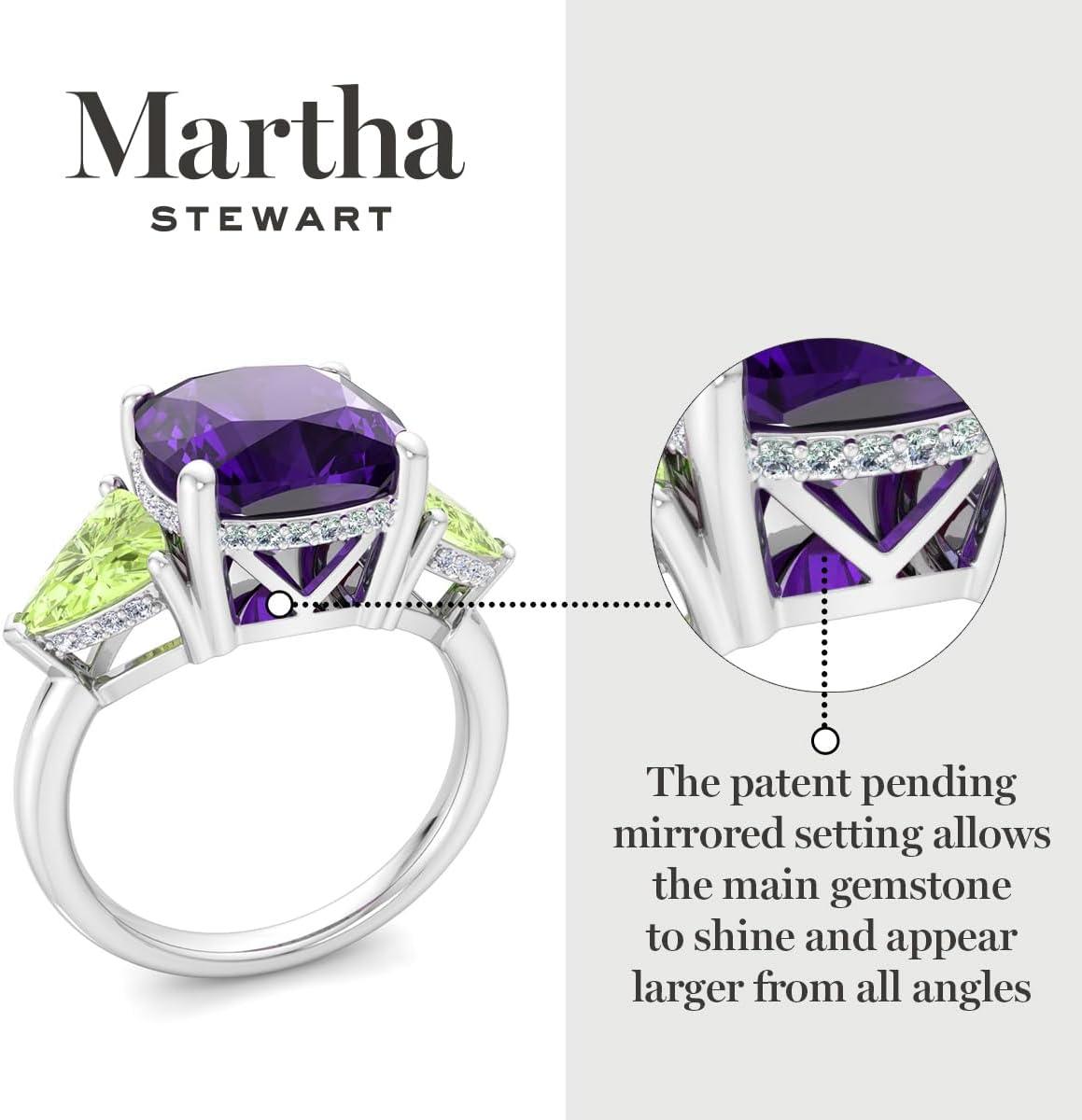 Martha Stewart 8 Carat Cushion Cut Gemstone Three Stone Ring with Lab Grown Diamonds in Sterling Silver, Choose Your Gemstone(Option 2)
