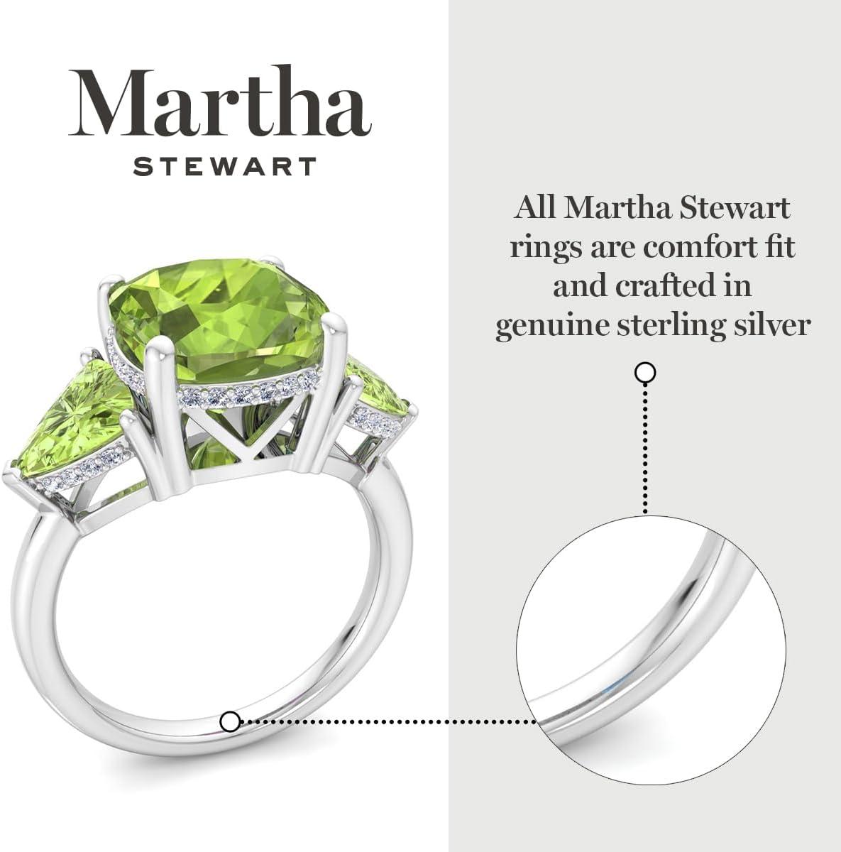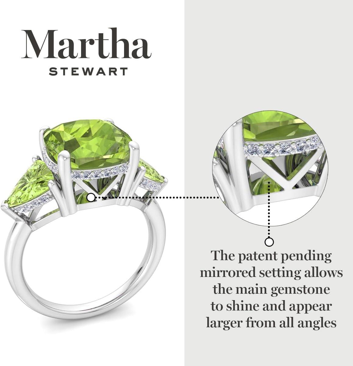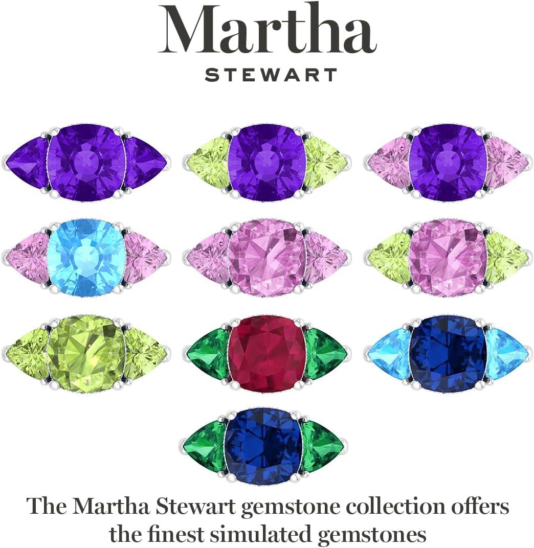 Martha Stewart 8 Carat Cushion Cut Gemstone Three Stone Ring with Lab Grown Diamonds in Sterling Silver, Choose Your Gemstone(Option 6)