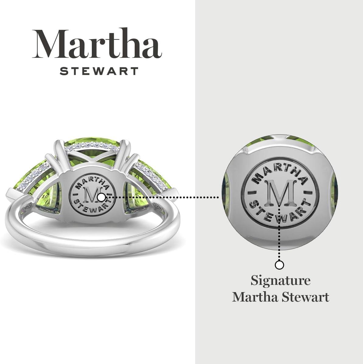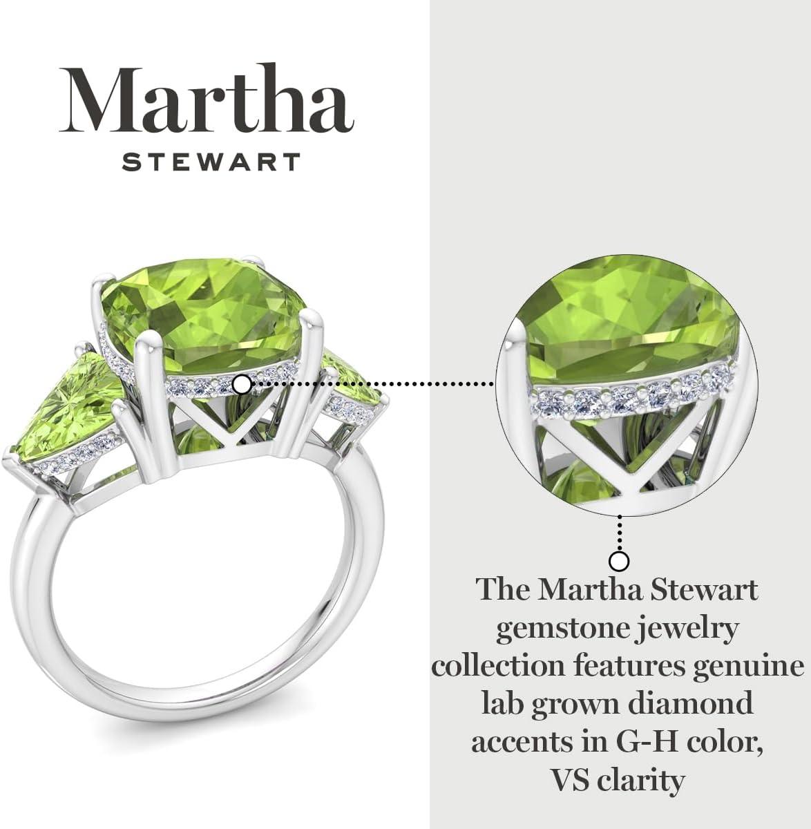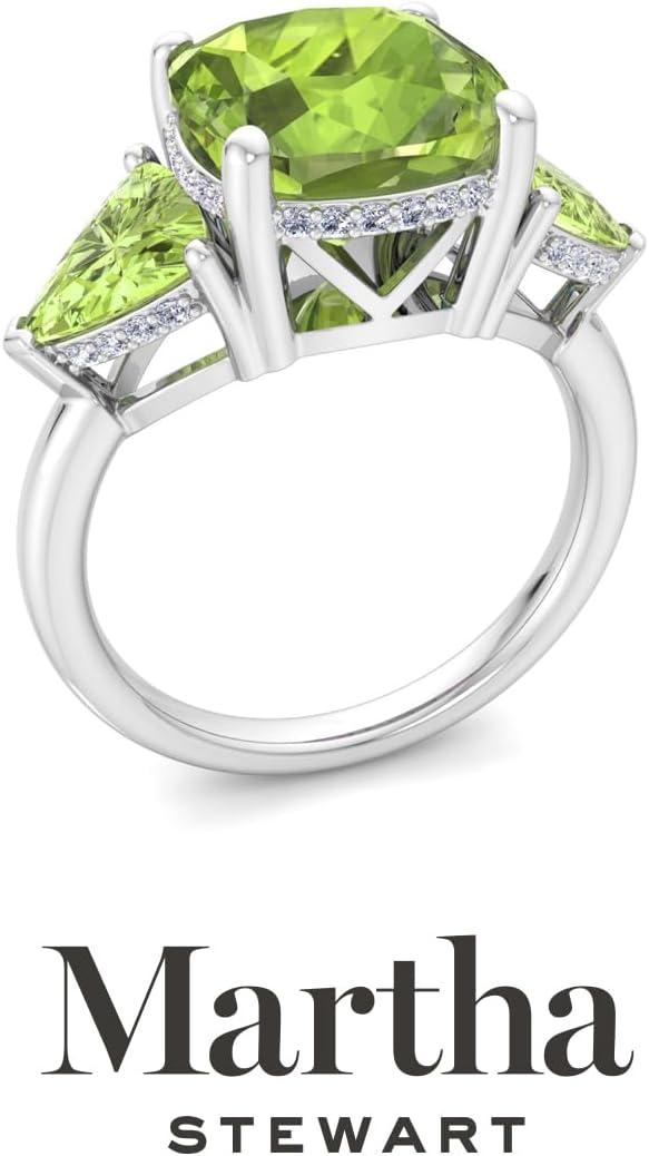 Martha Stewart 8 Carat Cushion Cut Gemstone Three Stone Ring with Lab Grown Diamonds in Sterling Silver, Choose Your Gemstone(Option 6)
