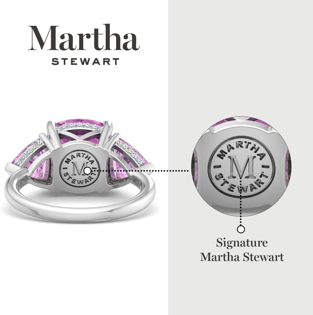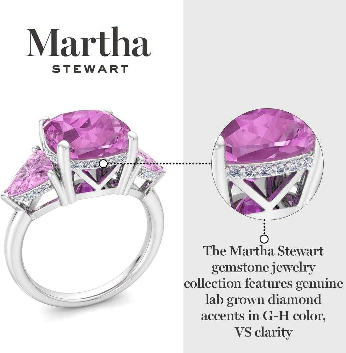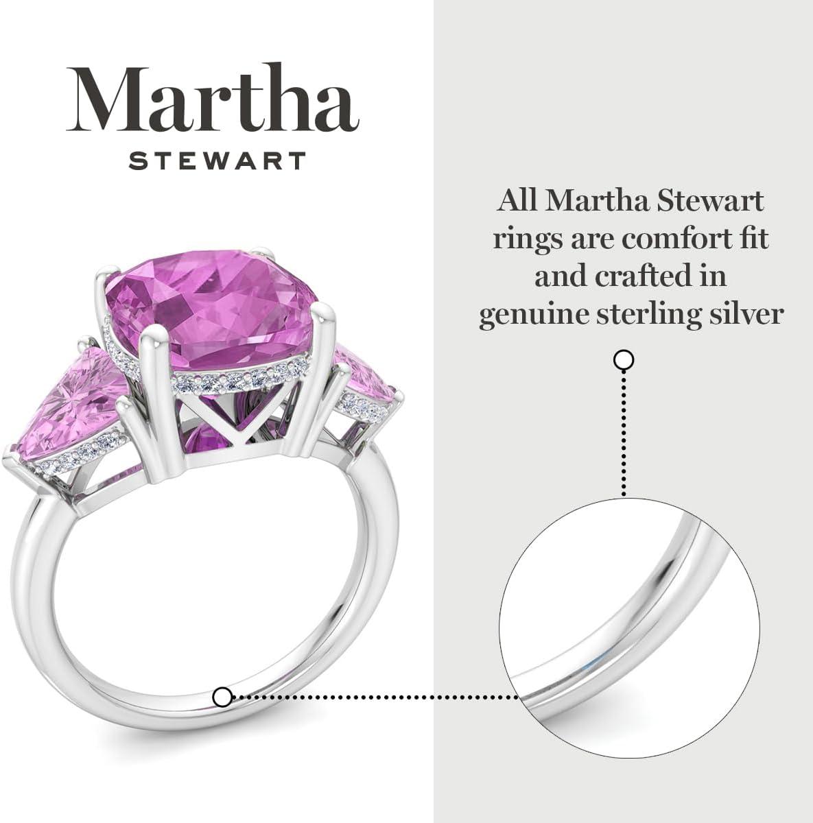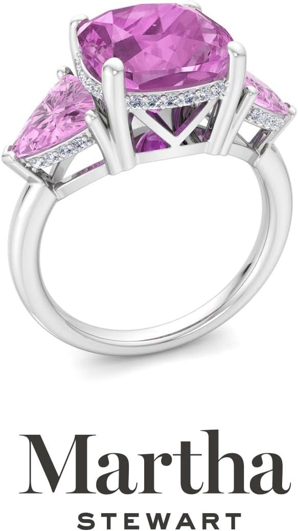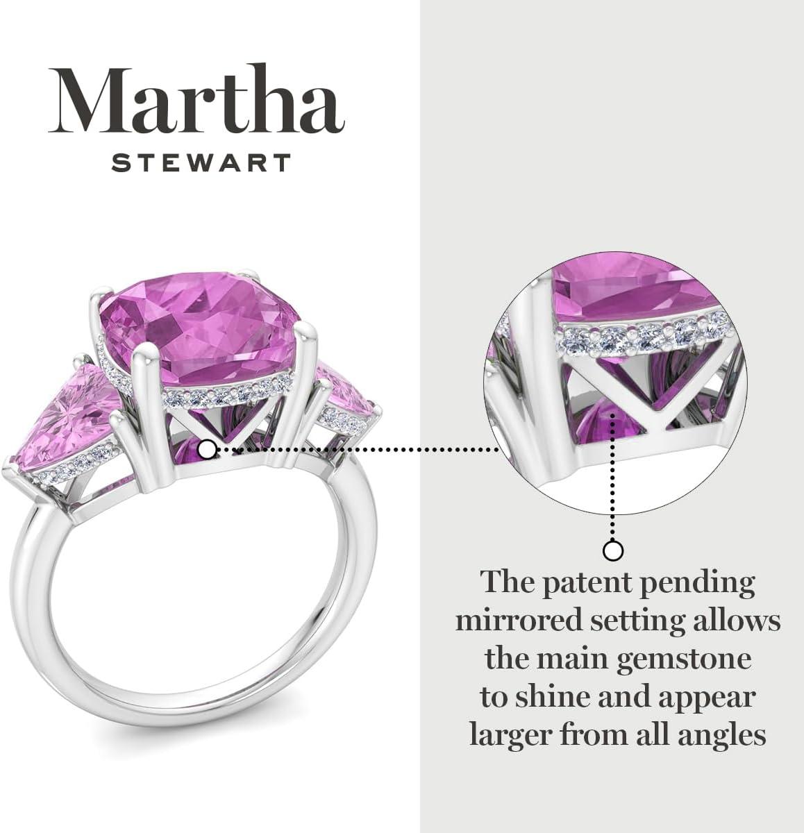Martha Stewart 8 Carat Cushion Cut Gemstone Three Stone Ring with Lab Grown Diamonds in Sterling Silver, Choose Your Gemstone(Option 8)
