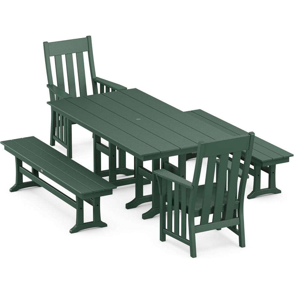 Martha Stewart Acadia 5-Piece Farmhouse Dining Set with Benches in Slate Grey(Green)