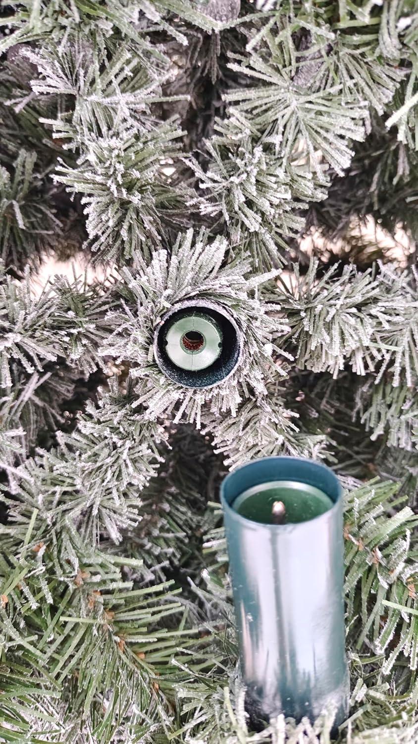 A unique blend of flocked PVC tips create a true-to-nature look leaving few gaps or spaces on the permanently affixed hinged branches, vertical internal branches, and garland-wrapped pole