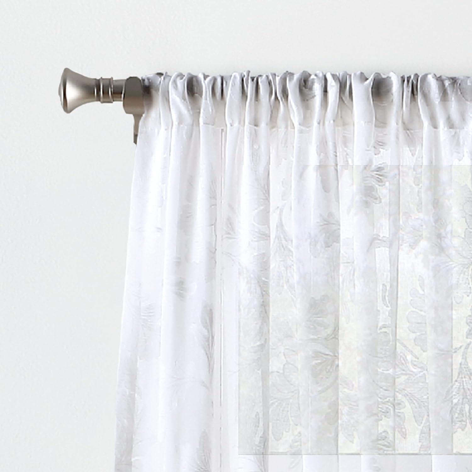Martha Stewart Aster Acanthus Semi-Sheer Rod Pocket Window Curtain Panel Pair, 84", White(White)