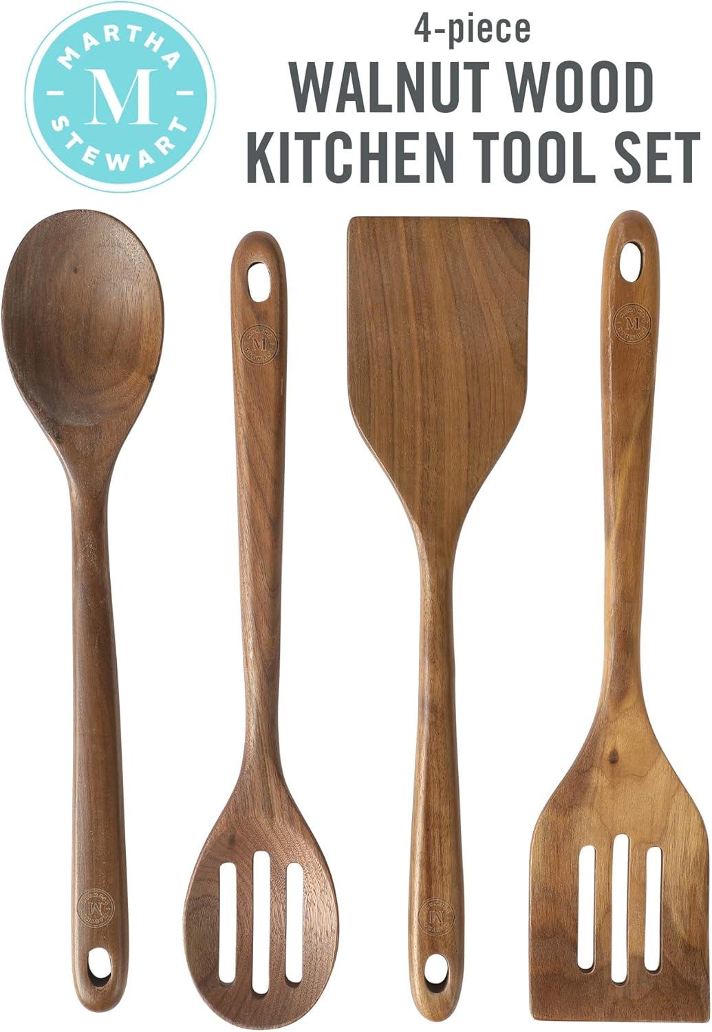 There is something cozy and welcoming about seeing a set of rustic kitchen tools with a natural-grained finish in any kitchen. They lend a piece of the outdoors and remind us of how home cooking makes us feel – right at home. The Bainford 4-piece Walnut Wood Kitchen Tool Set from Martha Stewart is a beautiful collection of cooking utensils crafted from ash wood for durability and finesse. Long and sturdy handles provide a smooth and comfortable grip when mixing, folding, and serving. Each kitchen utensil is safe to use on nonstick interiors, enameled surfaces, and other cookware with delicate finishes. Hand wash only. Occasionally apply a thin layer of oil to maintain the natural quality and finish of the product.