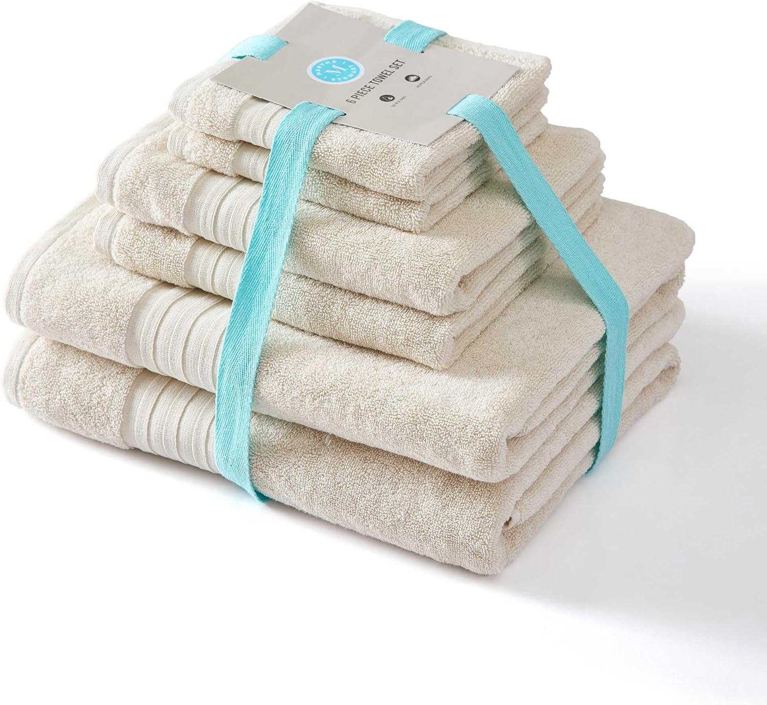 Martha Stewart – Bath Towels, Soft & Absorbent 100% Cotton Towels, Plush 700 GSM, 6-Piece Bathroom Towel Set with Textured Dobby Weave (Skyland Manor Green)(Skyland Manor Beige)