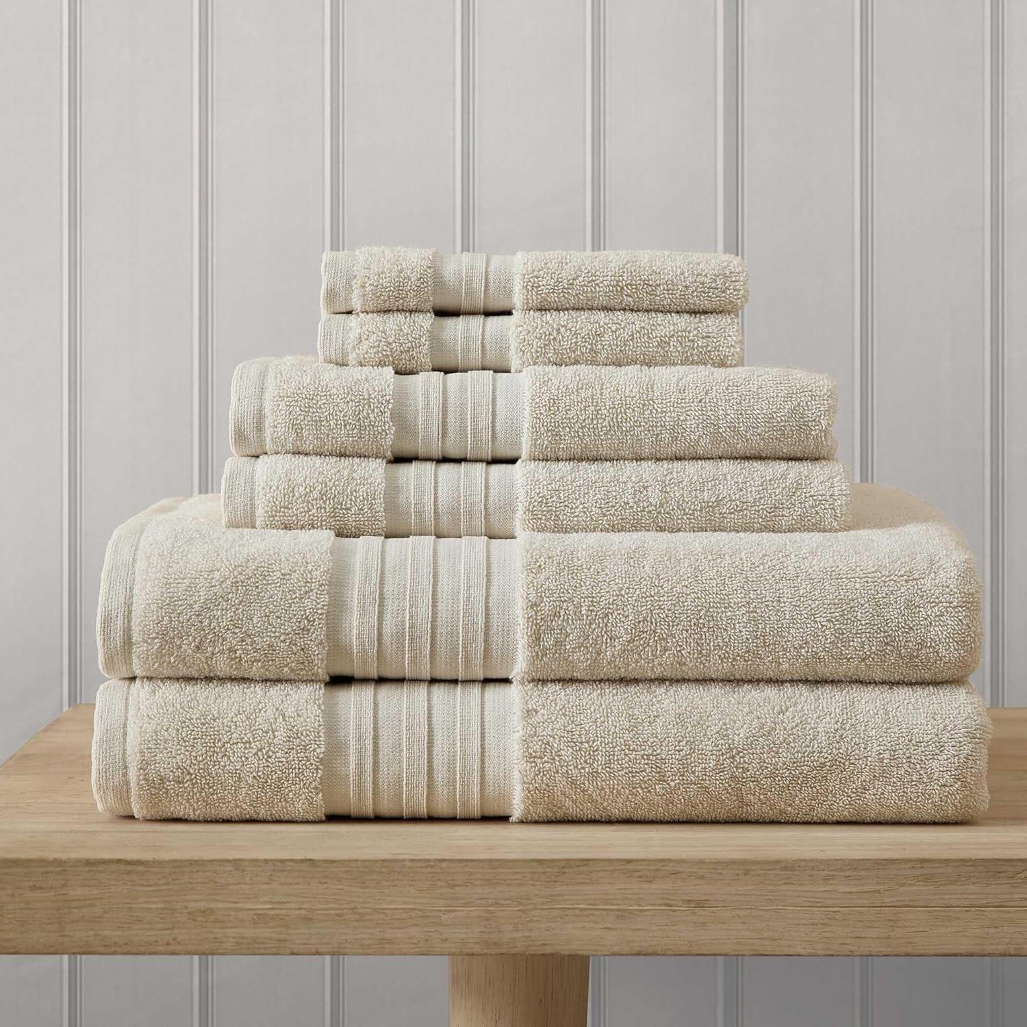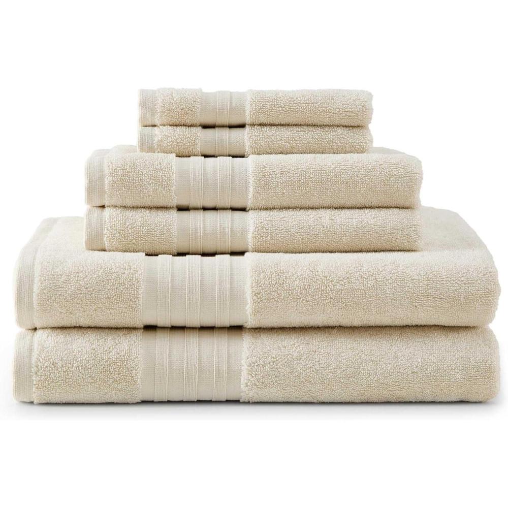 Martha Stewart - Bath Towels, Soft & Absorbent 100% Cotton Towels, Plush 700 GSM, 6-Piece Bathroom Towel Set with Textured Dobby Weave (Skyland Manor Green)(Skyland Manor Beige)