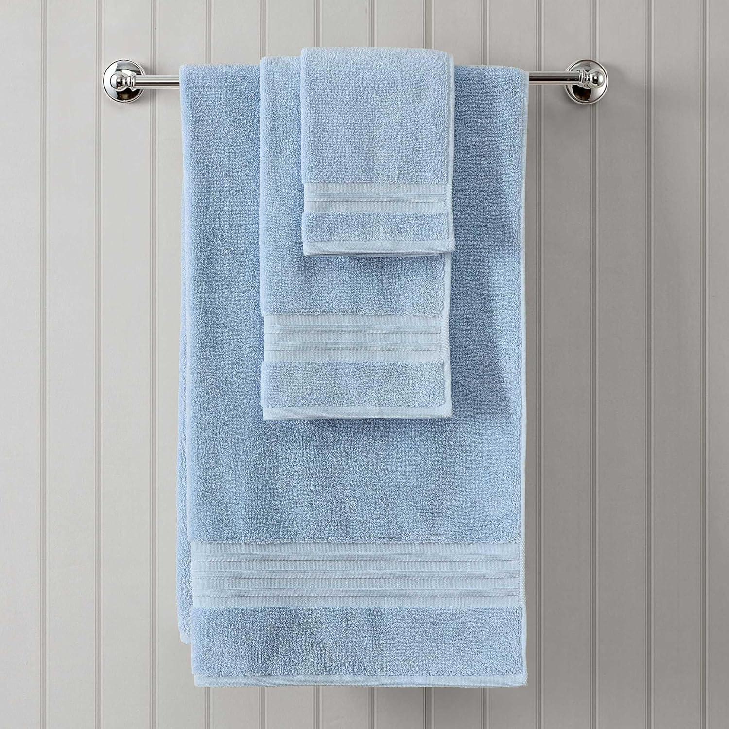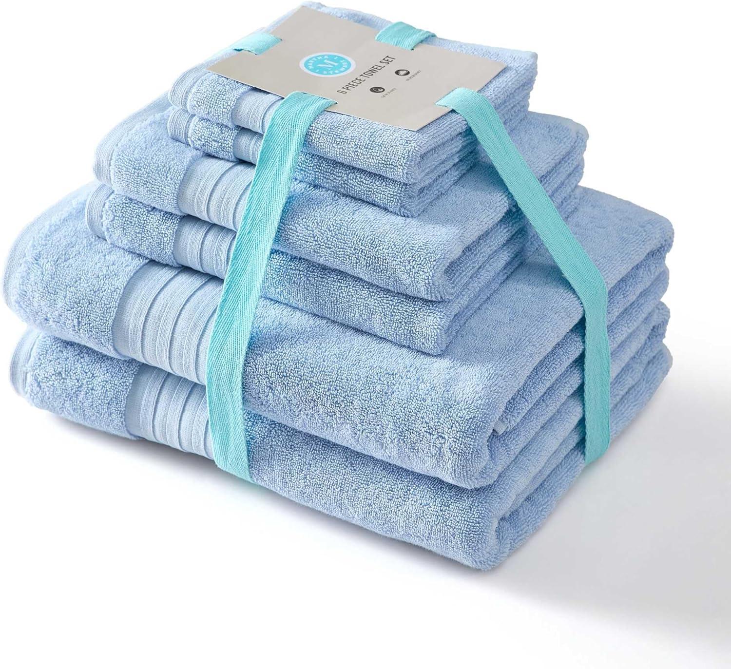 Martha Stewart – Bath Towels, Soft & Absorbent 100% Cotton Towels, Plush 700 GSM, 6-Piece Bathroom Towel Set with Textured Dobby Weave (Skyland Manor Green)(Skyland Manor Blue)