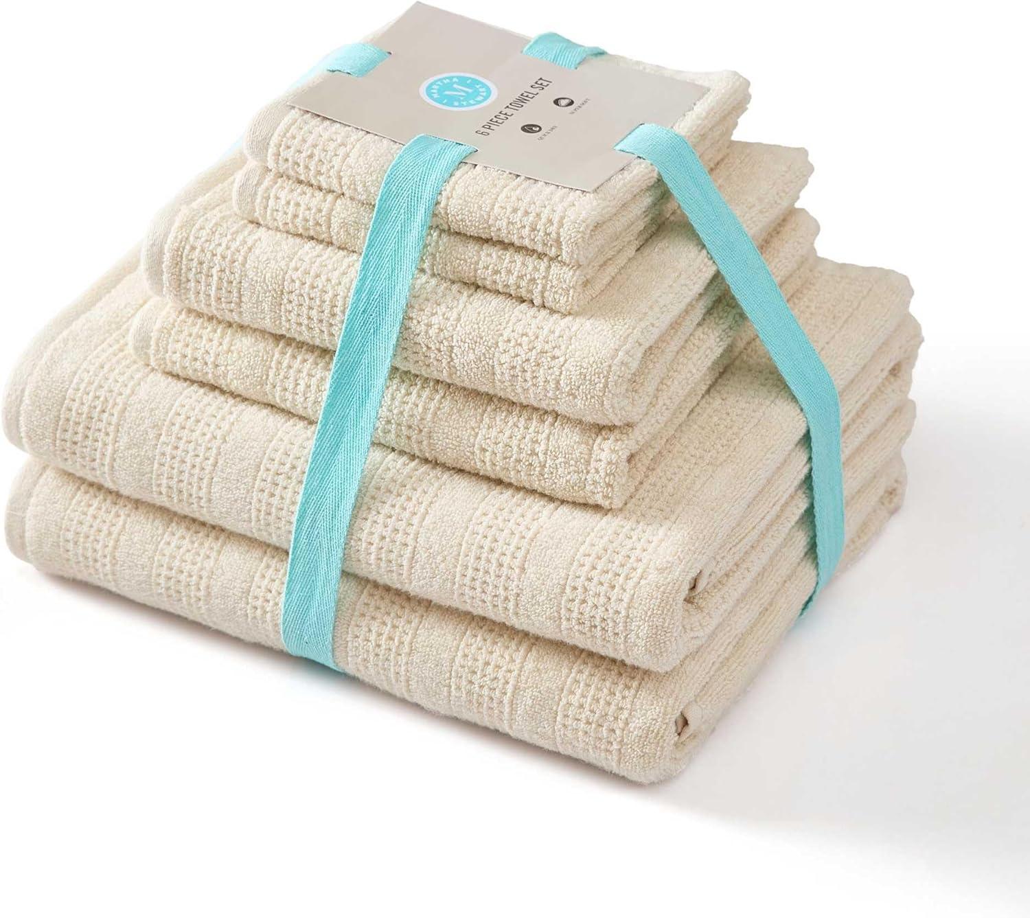 Martha Stewart – Bath Towels, Soft & Absorbent 100% Cotton Towels, Solid 500 GSM, 6-Piece Bathroom Towel Set with Textured Weave (Bedford Cottage Green)(Bedford Cottage Beige)