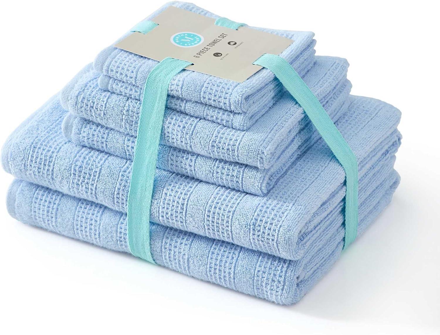 Martha Stewart - Bath Towels, Soft & Absorbent 100% Cotton Towels, Solid 500 GSM, 6-Piece Bathroom Towel Set with Textured Weave (Bedford Cottage Green)(Bedford Cottage Blue)