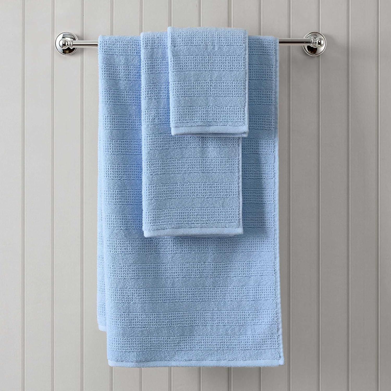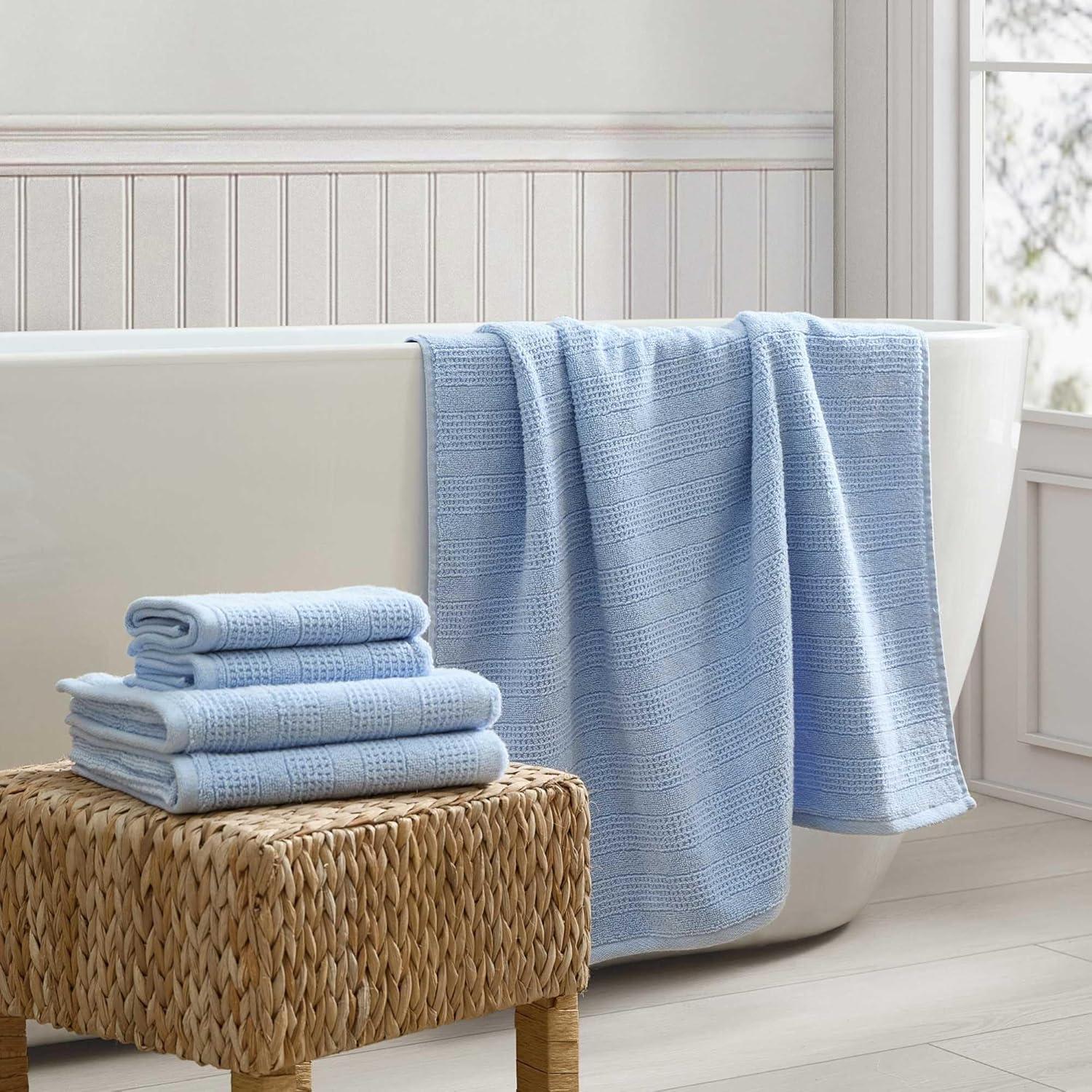 Martha Stewart – Bath Towels, Soft & Absorbent 100% Cotton Towels, Solid 500 GSM, 6-Piece Bathroom Towel Set with Textured Weave (Bedford Cottage Green)(Bedford Cottage Blue)