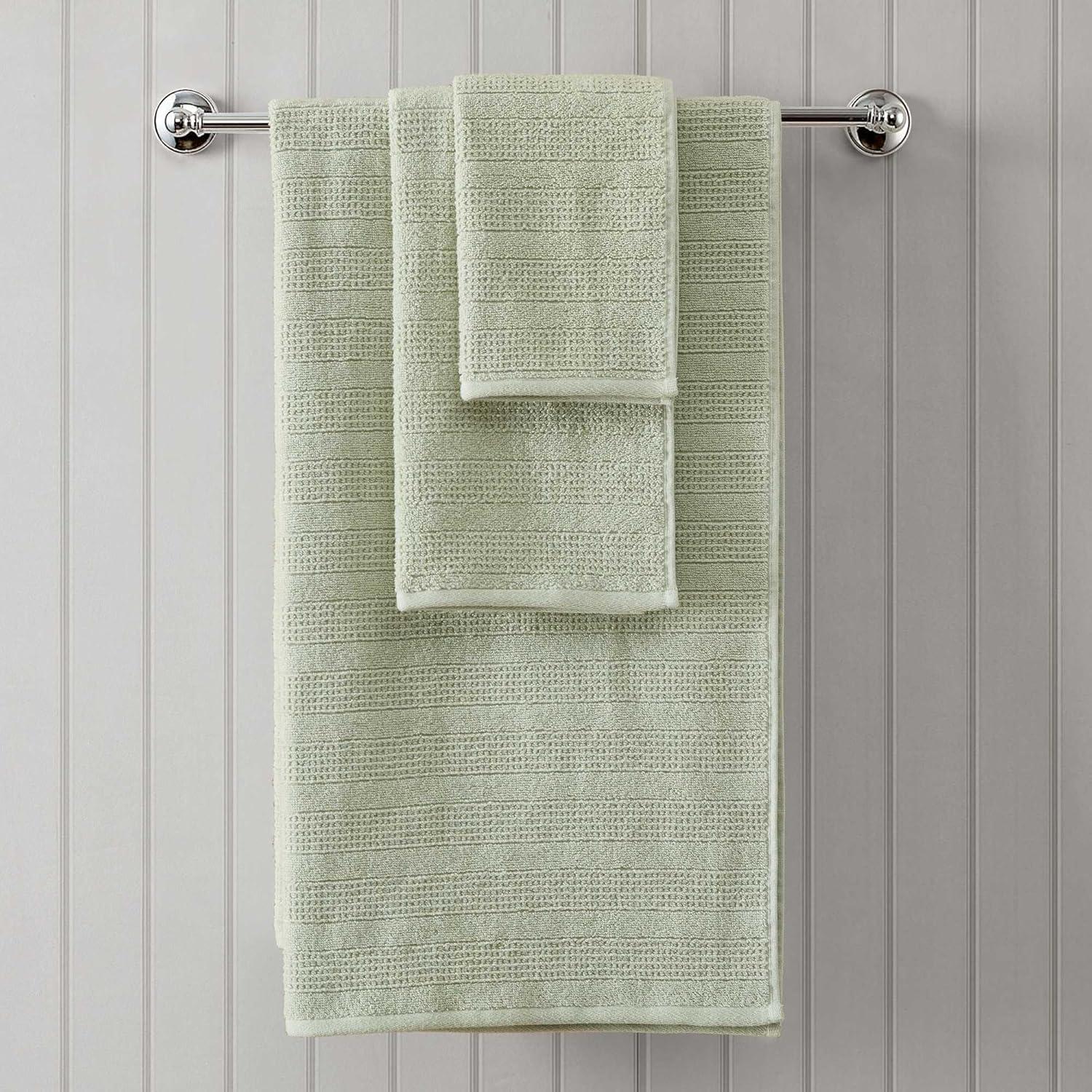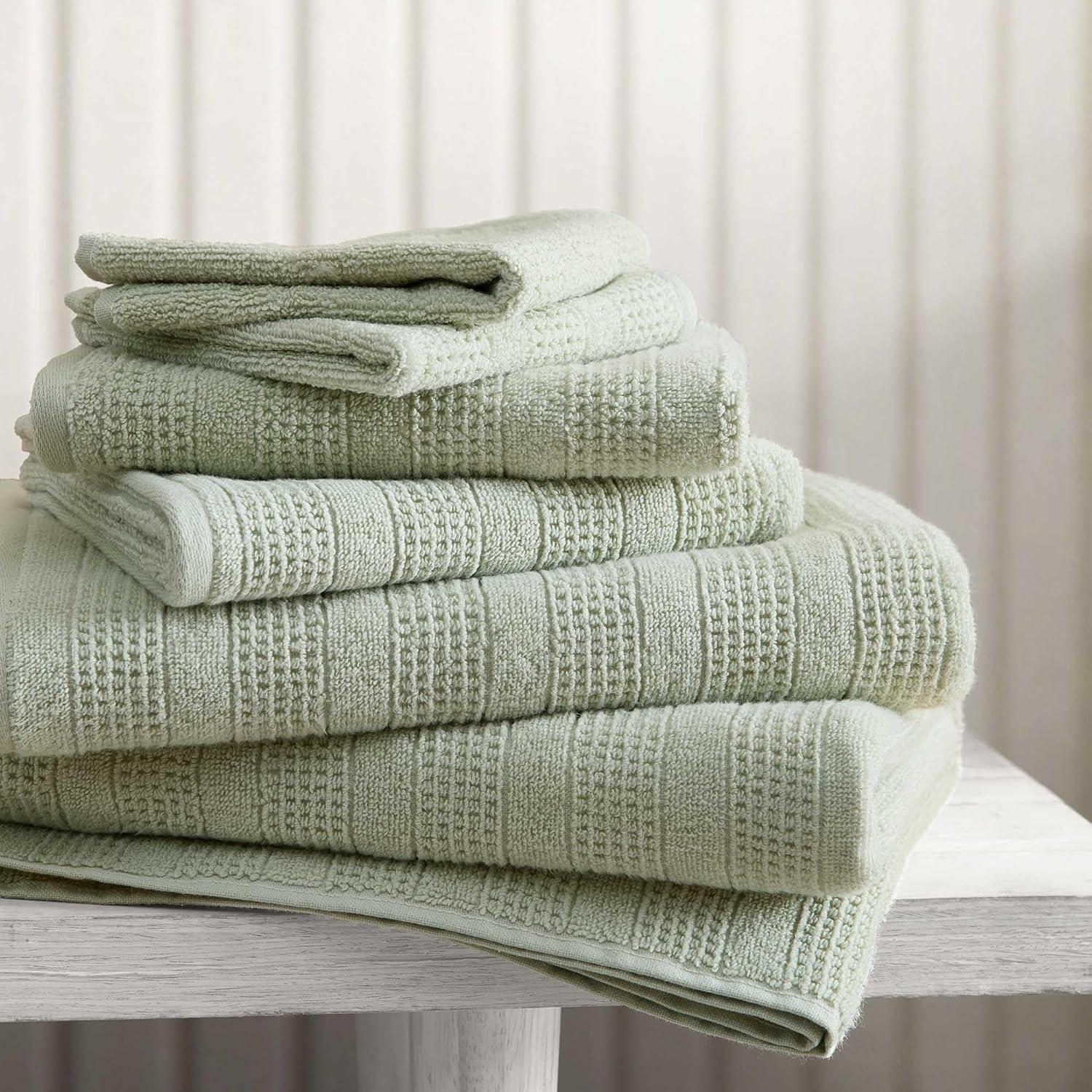 QUALITY: Crafted from solid 500 GSM cotton with a textured weave, our towel set offers excellent absorbency, soft comfort, and lasting durability. Finished in a refreshing light green shade with a clean, refined look, these towels add a spa-like sense of freshness to your daily routine.