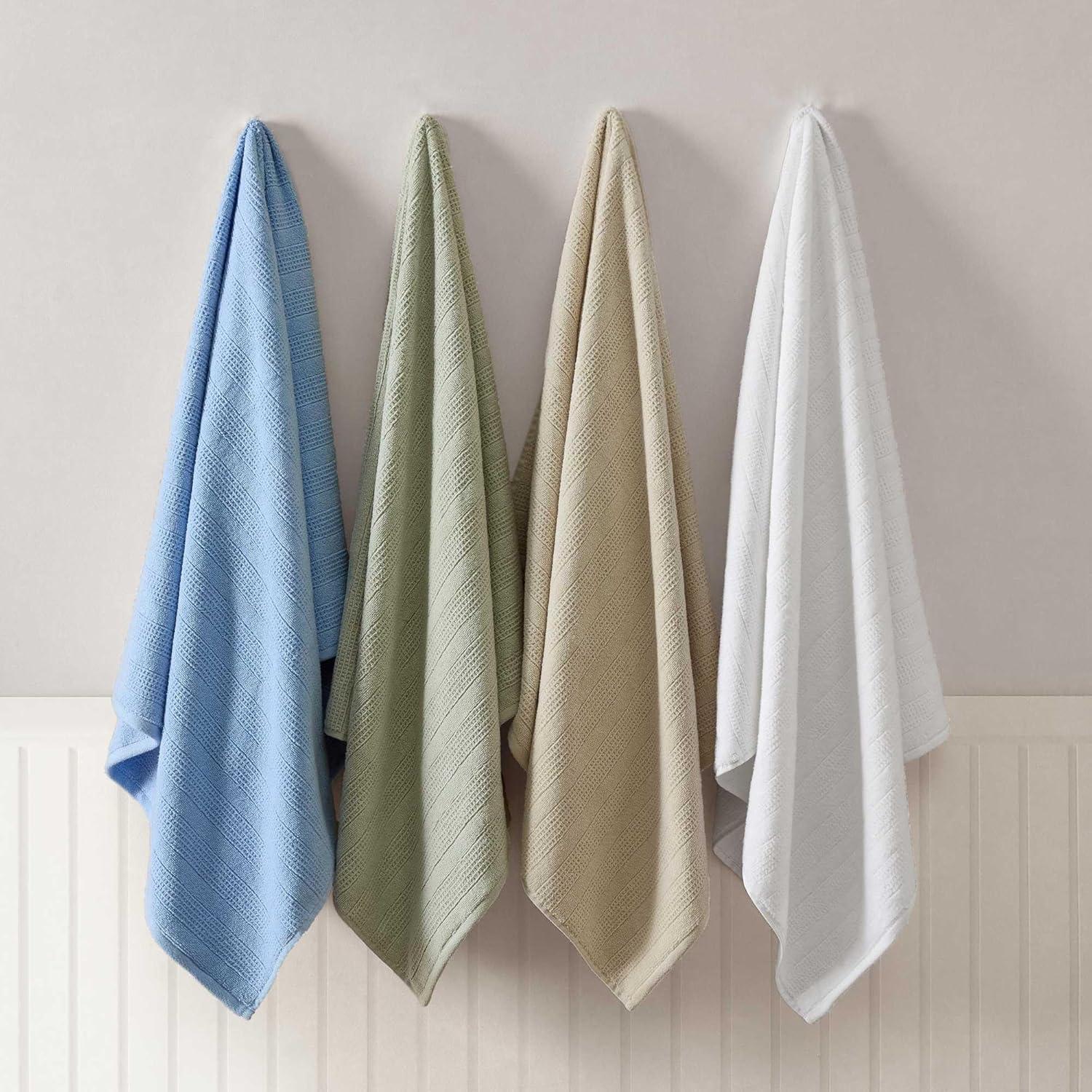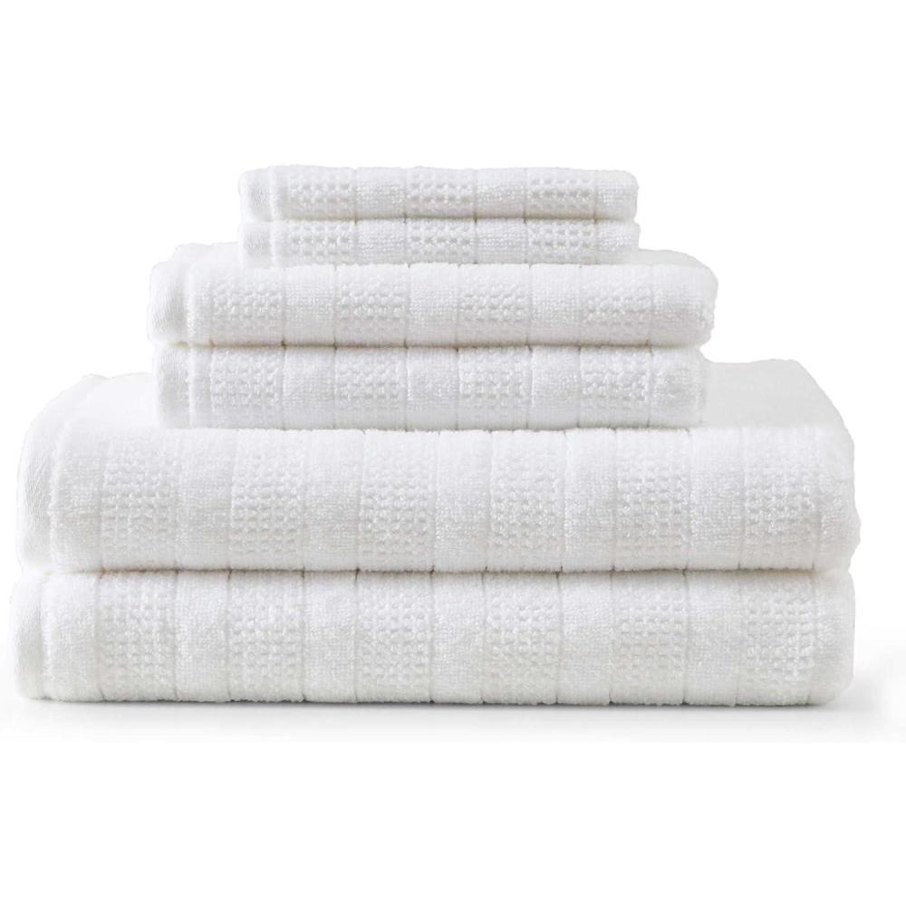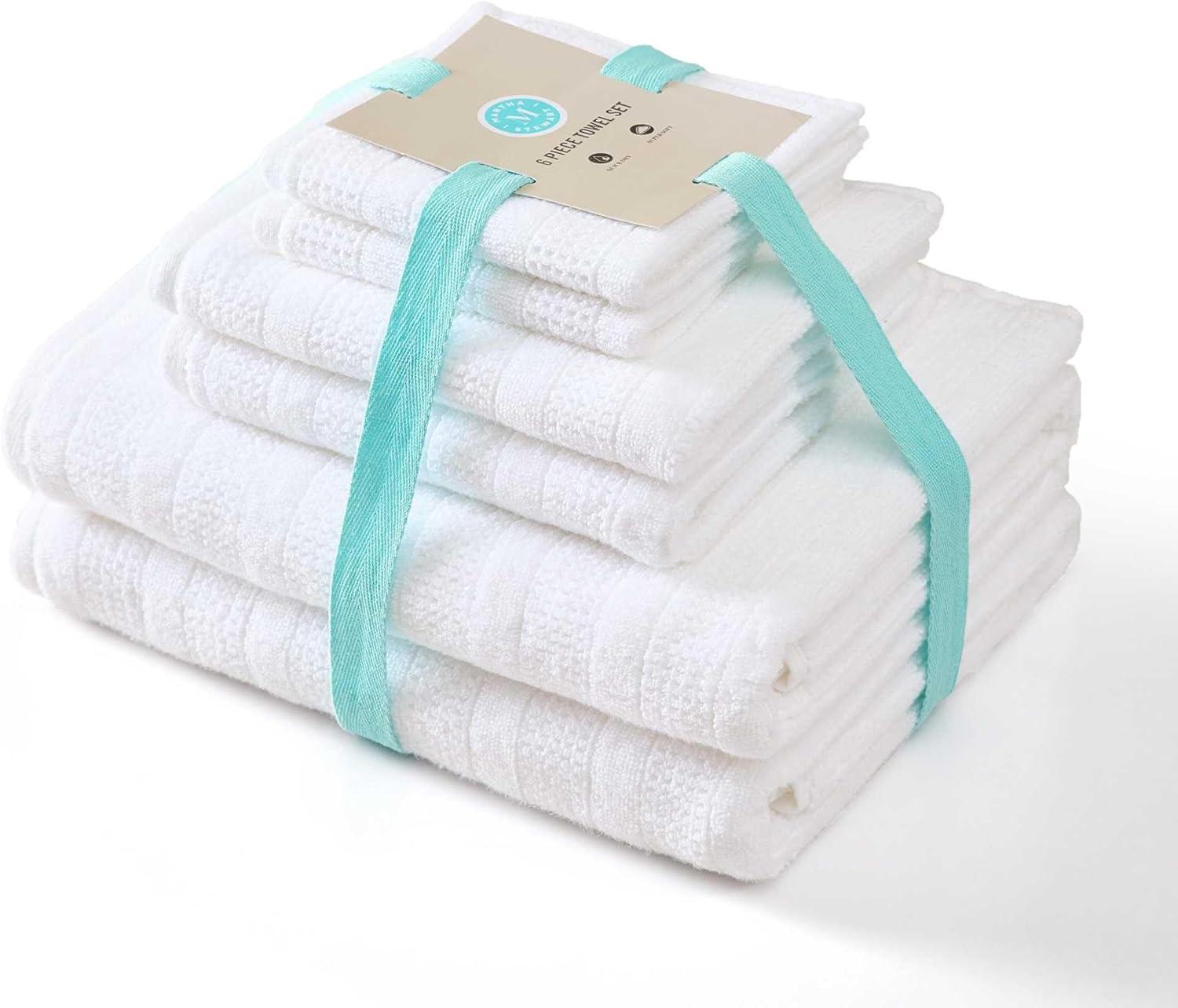 Martha Stewart - Bath Towels, Soft & Absorbent 100% Cotton Towels, Solid 500 GSM, 6-Piece Bathroom Towel Set with Textured Weave (Bedford Cottage Green)(Bedford Cottage White)