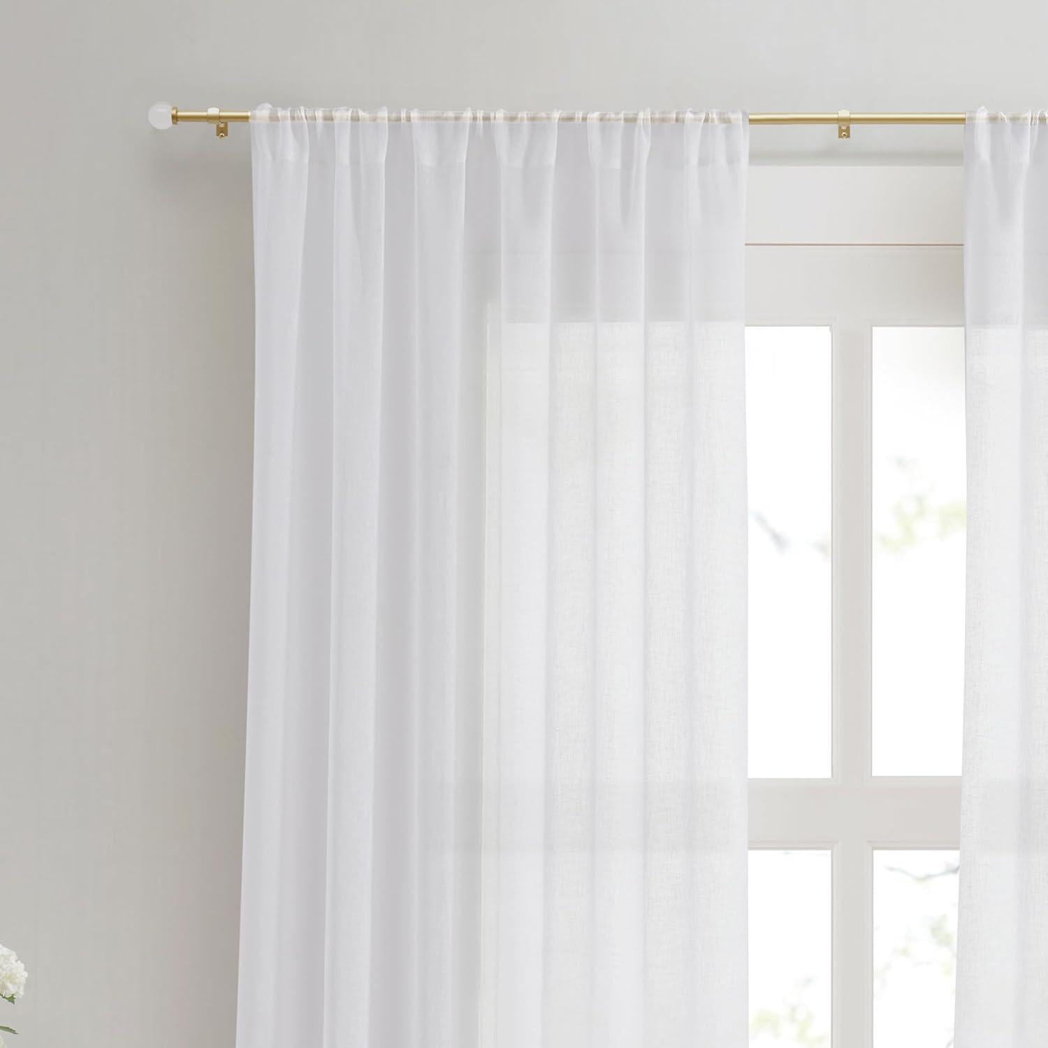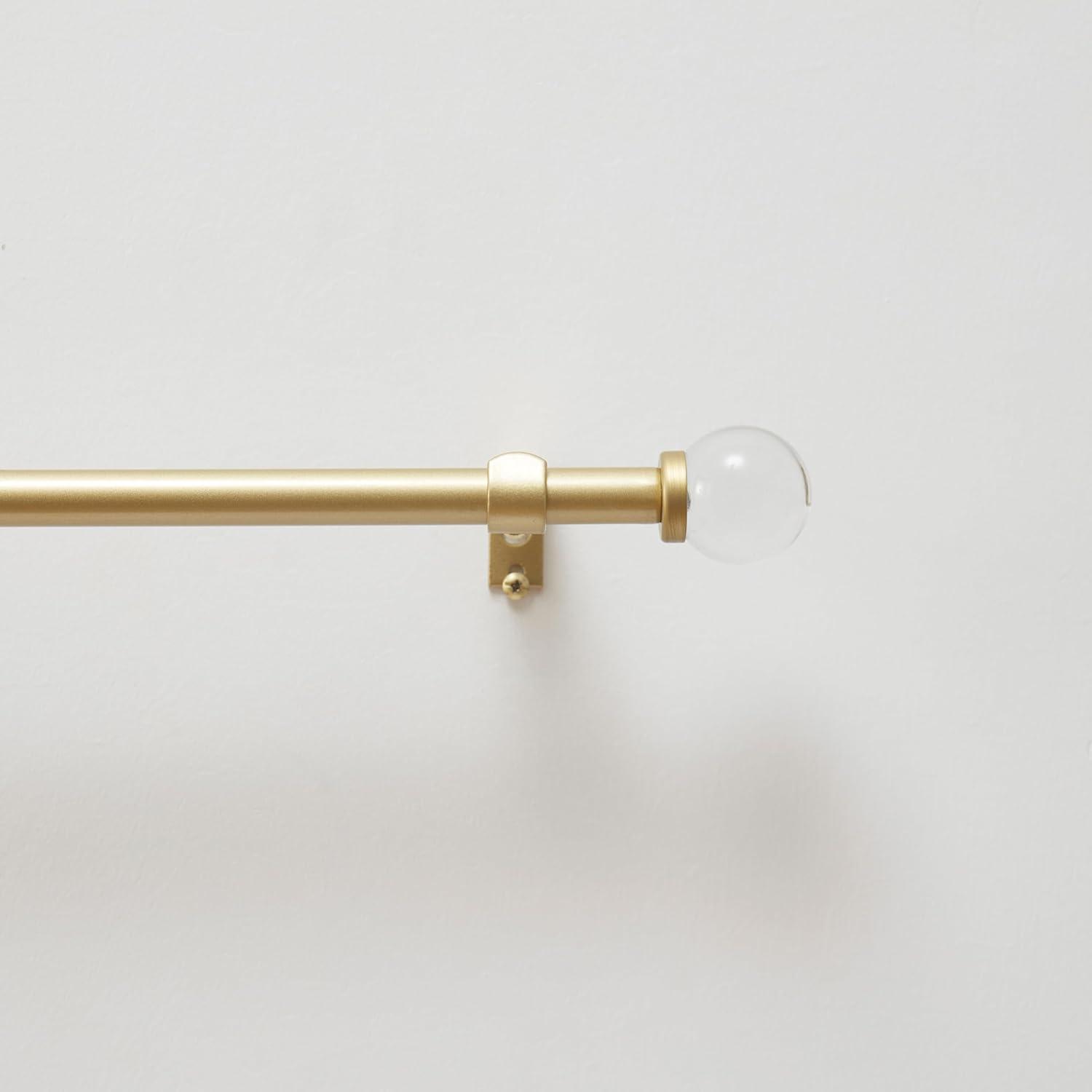BRUSHED BRASS Single curtain rod has a brushed brass finish. With its sleek and classic look, this curtain rod accessory will coordinate with an array of home décor styles.