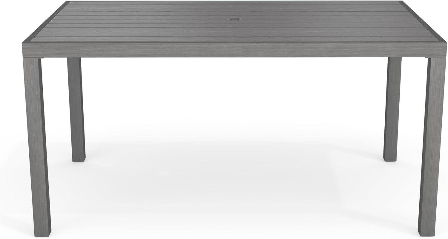 Martha Stewart Bedford 71" Indoor-Outdoor Aluminum Patio Table with Umbrella Hole and Brushed Woodgrain Finish in Brown(Grey)