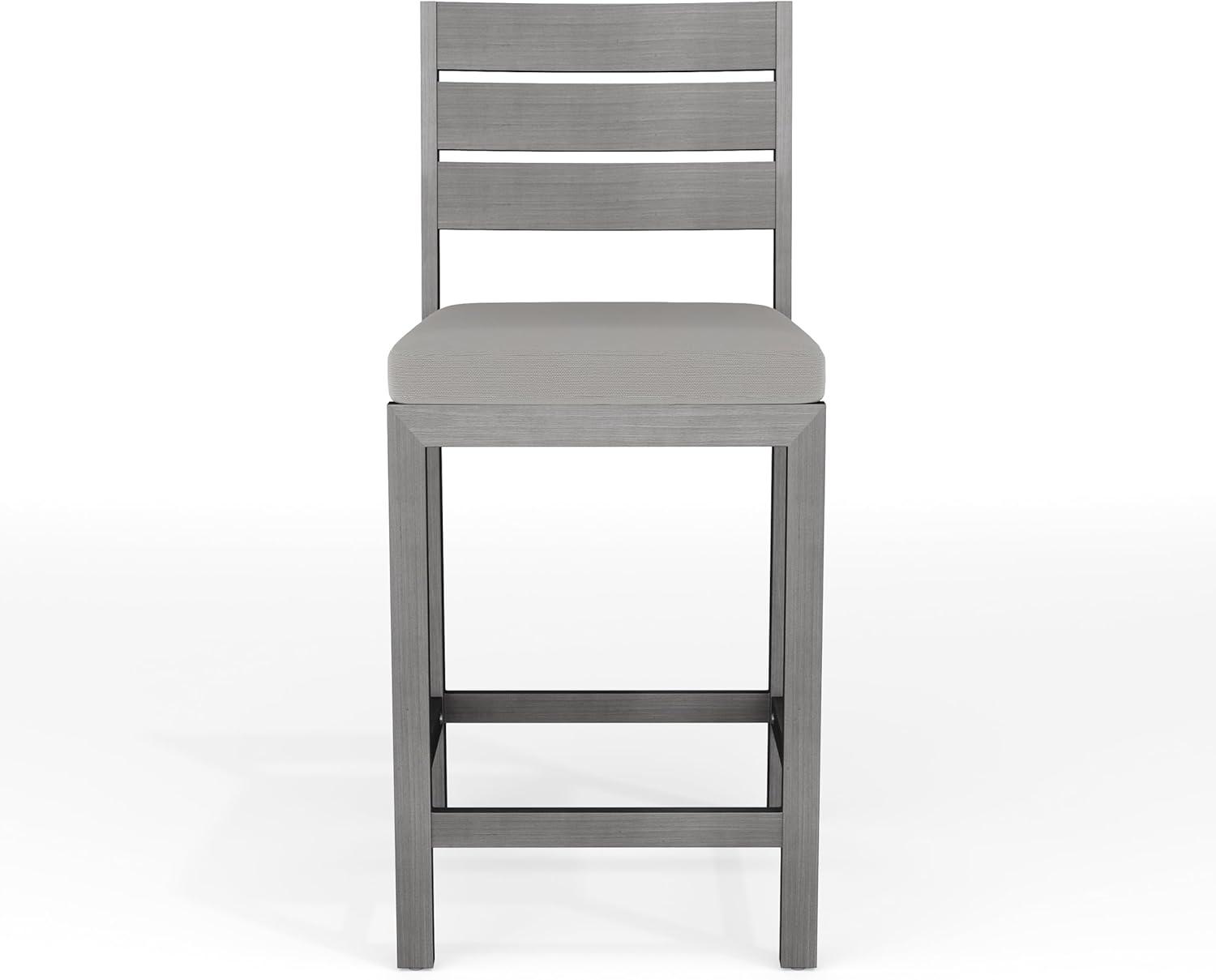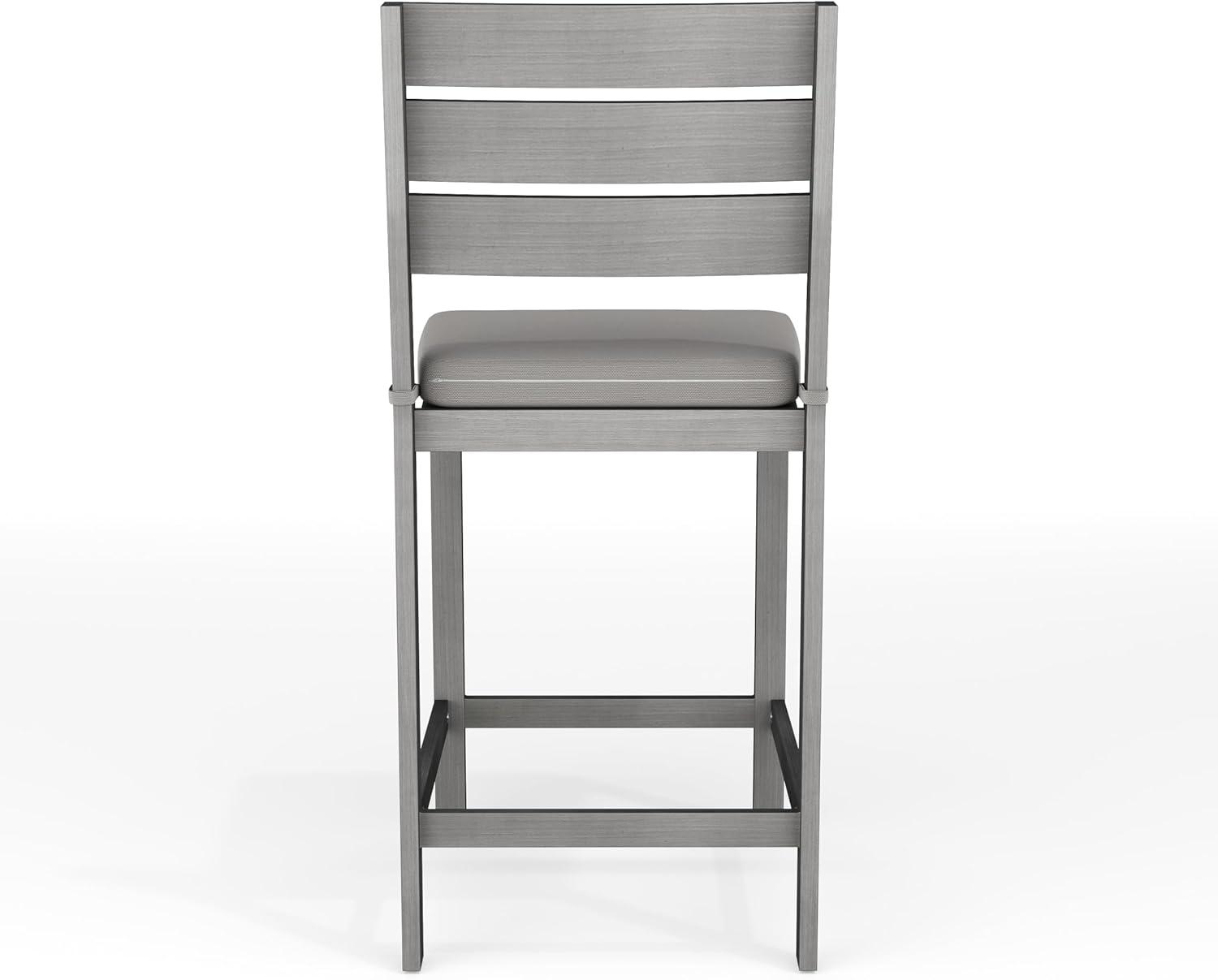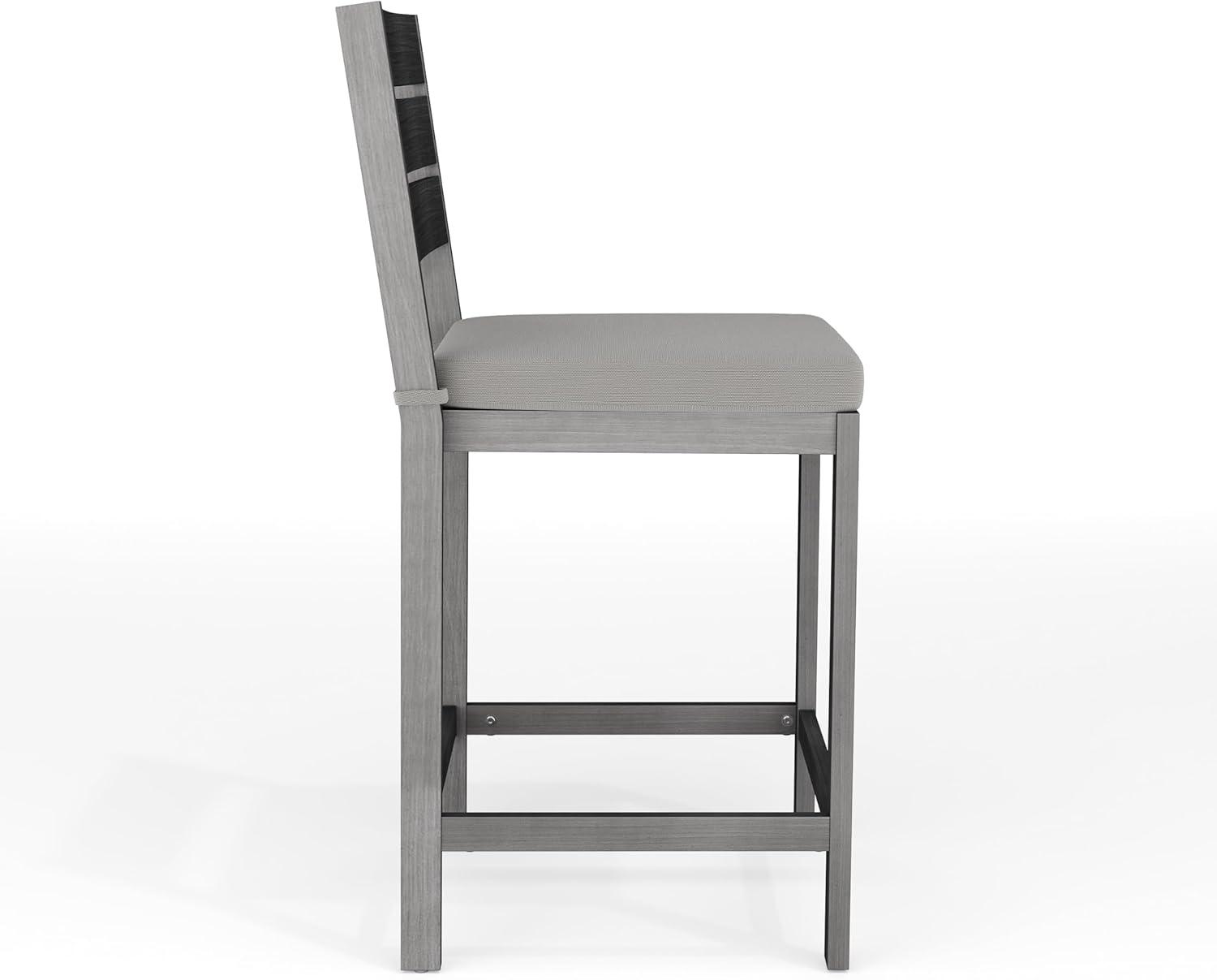 Martha Stewart Bedford Indoor-Outdoor Aluminum Patio Bar Stools with Brushed Woodgrain Finish in Gray and Gray All-Weather Cushions, Set of 2(Grey)