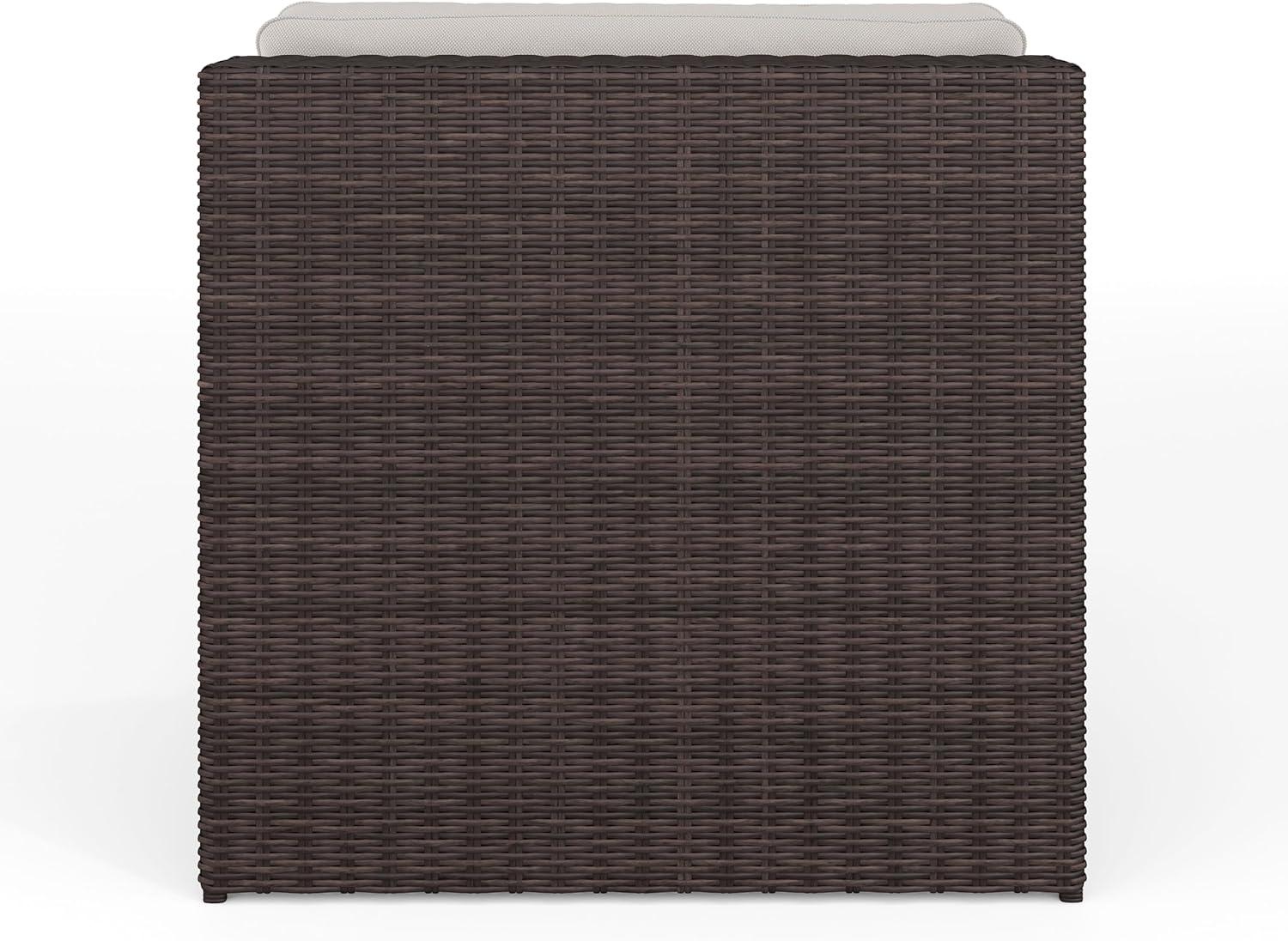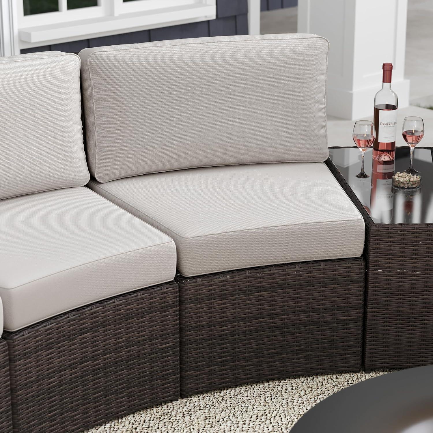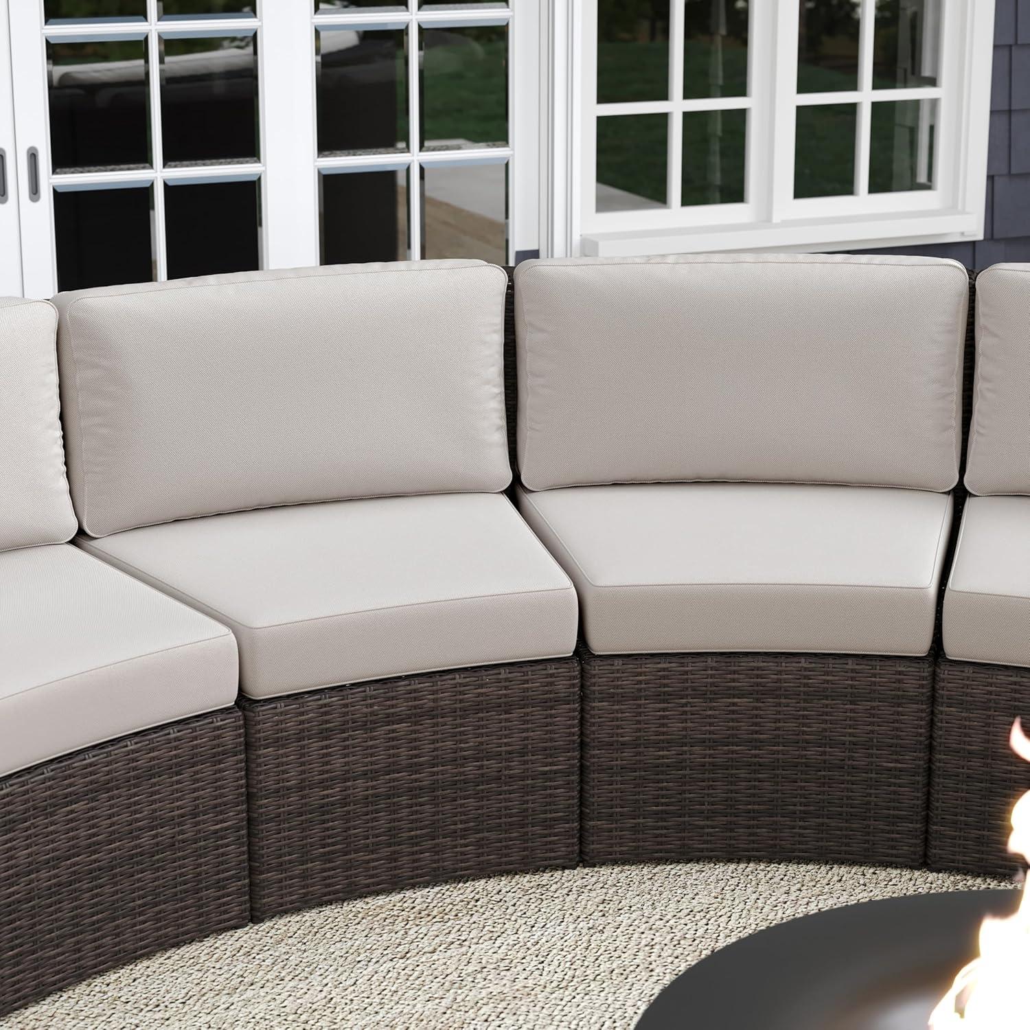 Martha Stewart Bedford Indoor-Outdoor Modular Patio Curved Sectional Sofa Seat with Rattan Wicker Finish in Brown with Tan All-Weather Cushions(Tan Cushions/Brown Frame)