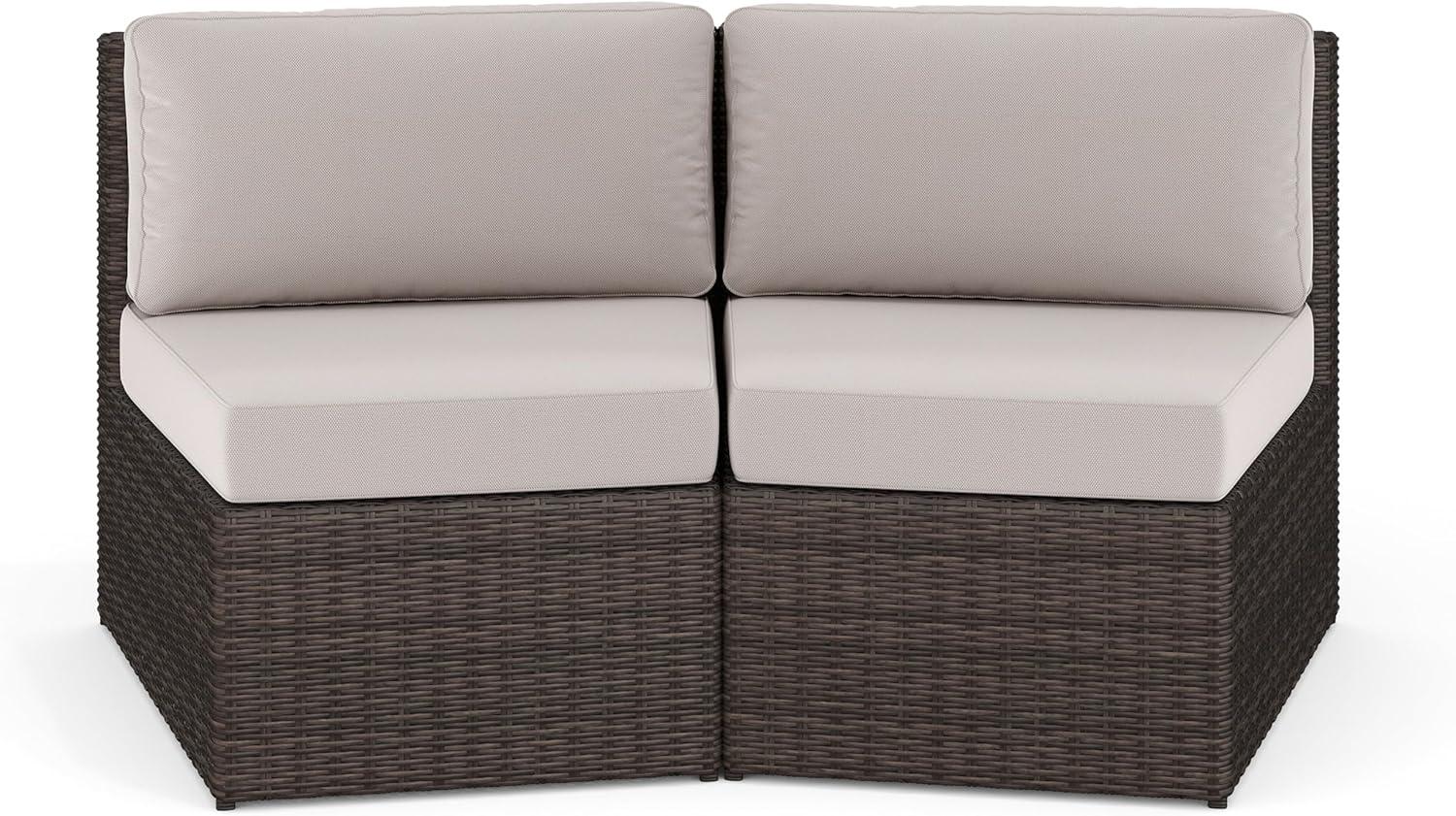 Martha Stewart Bedford Indoor-Outdoor Modular Patio Curved Sectional Sofa Seat with Rattan Wicker Finish in Brown with Tan All-Weather Cushions(Gray Cushions/Gray Frame)