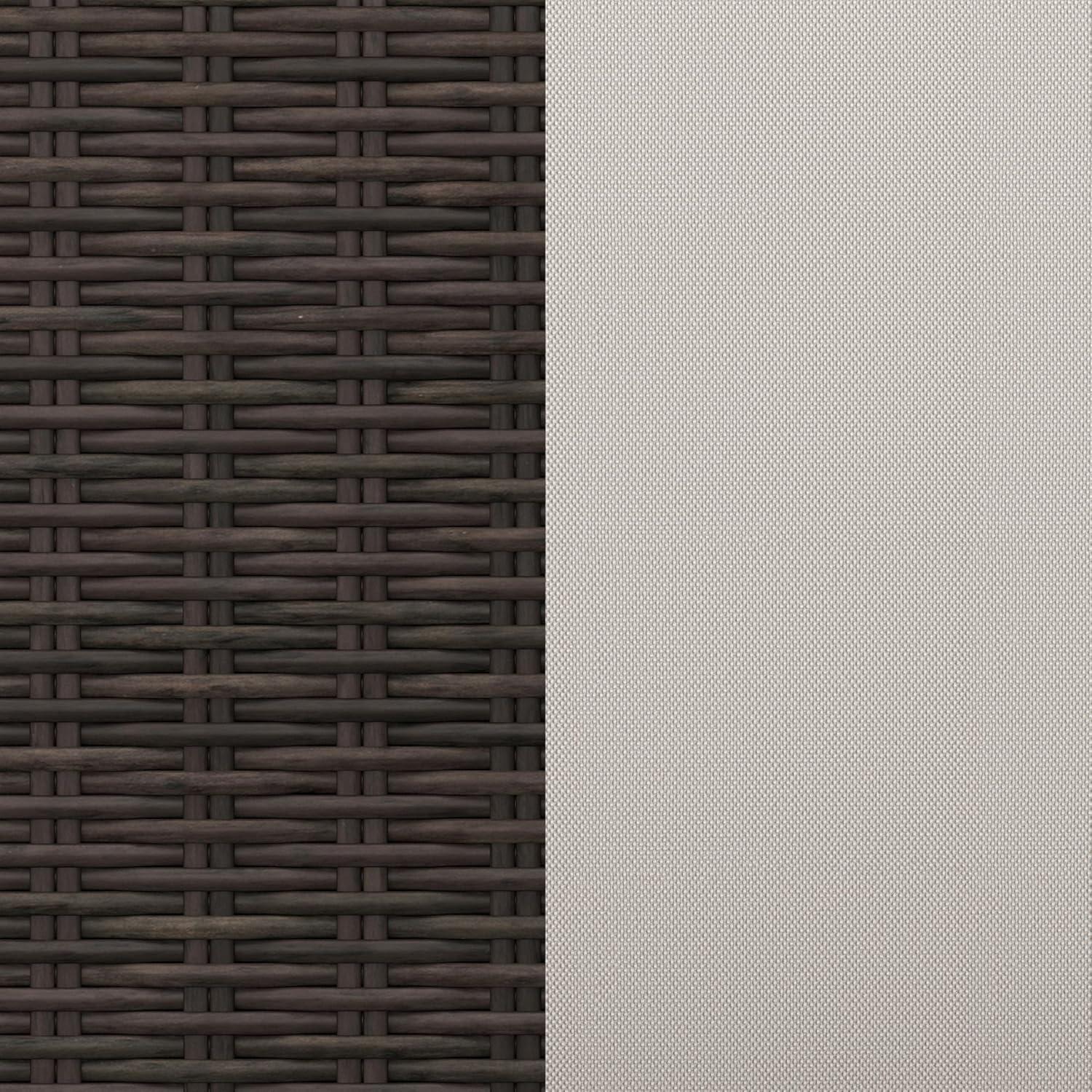 All-weather rustproof metal frame wrapped in rattan wicker with 4.5″ thick weather and water-resistant olefin easy clean seat cushions and luxurious back cushions