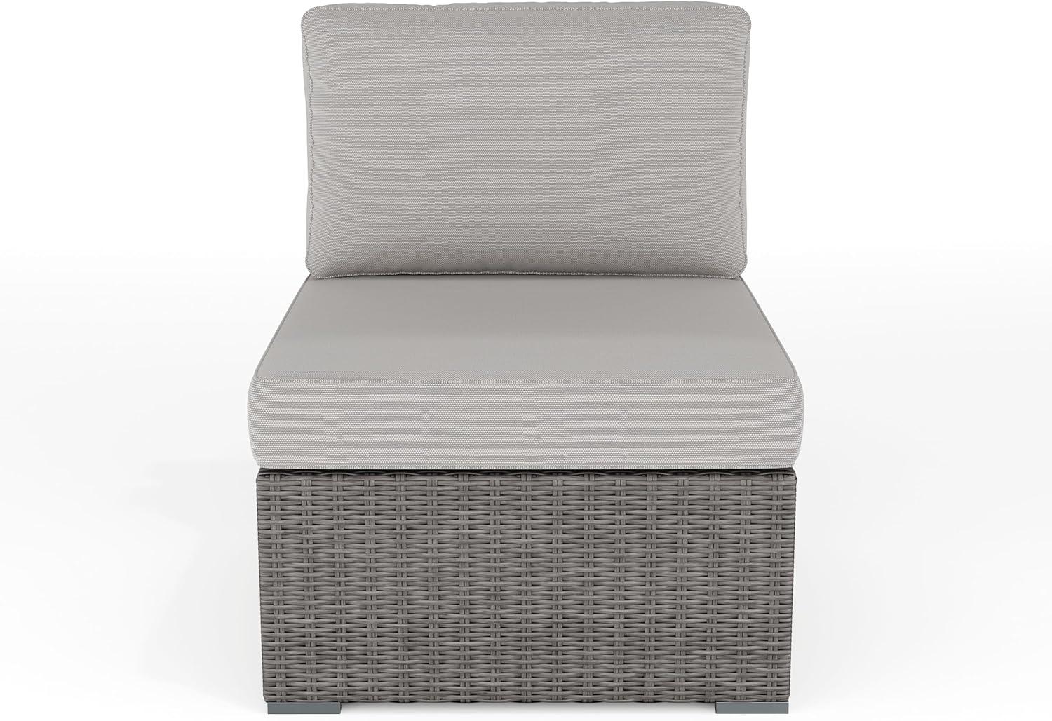 Martha Stewart Bedford Indoor-Outdoor Modular Patio Sectional Sofa Center Seat with Rattan Wicker Finish in Gray with Gray All-Weather Cushions(Gray Cushions/Gray Frame)