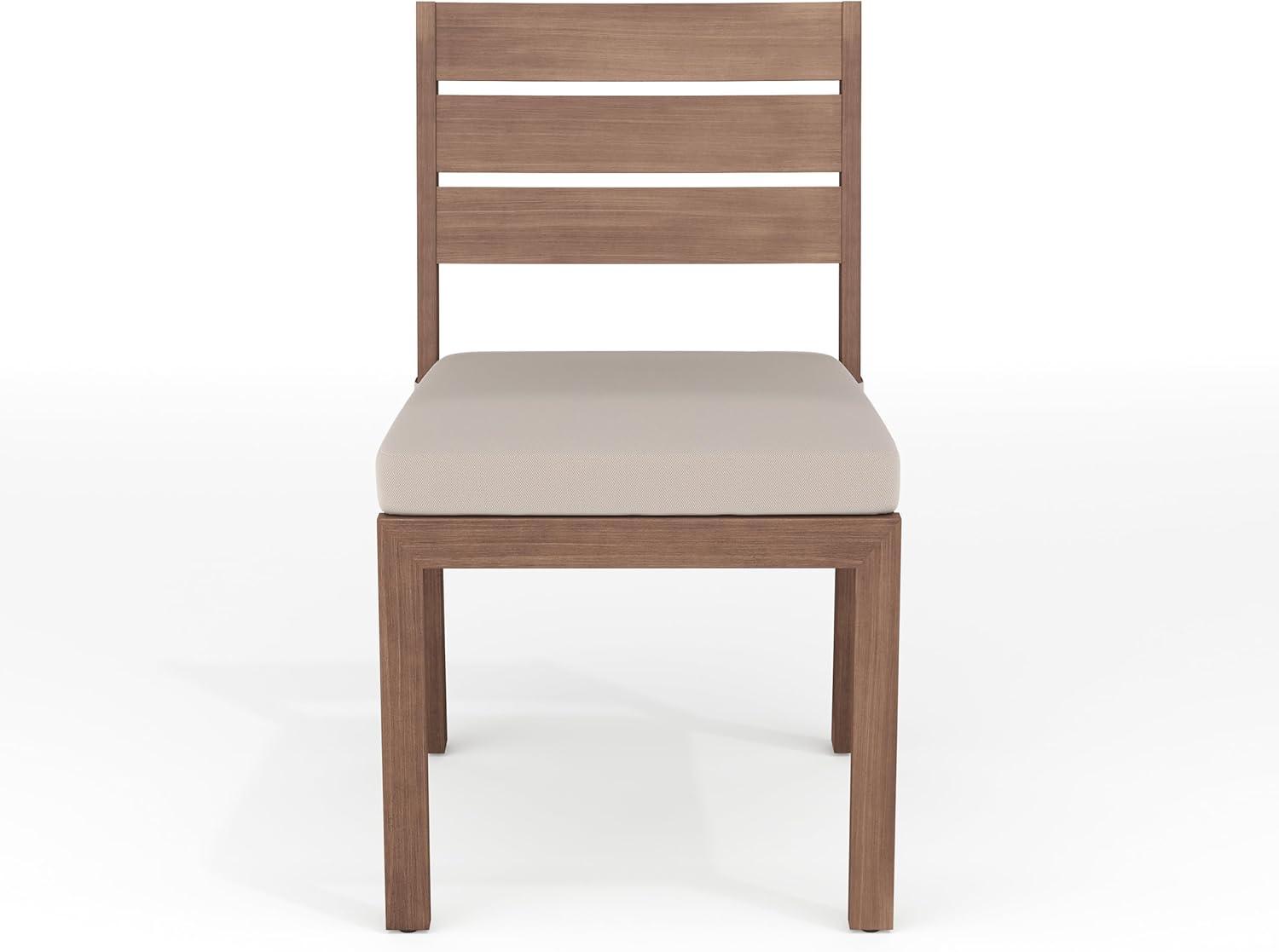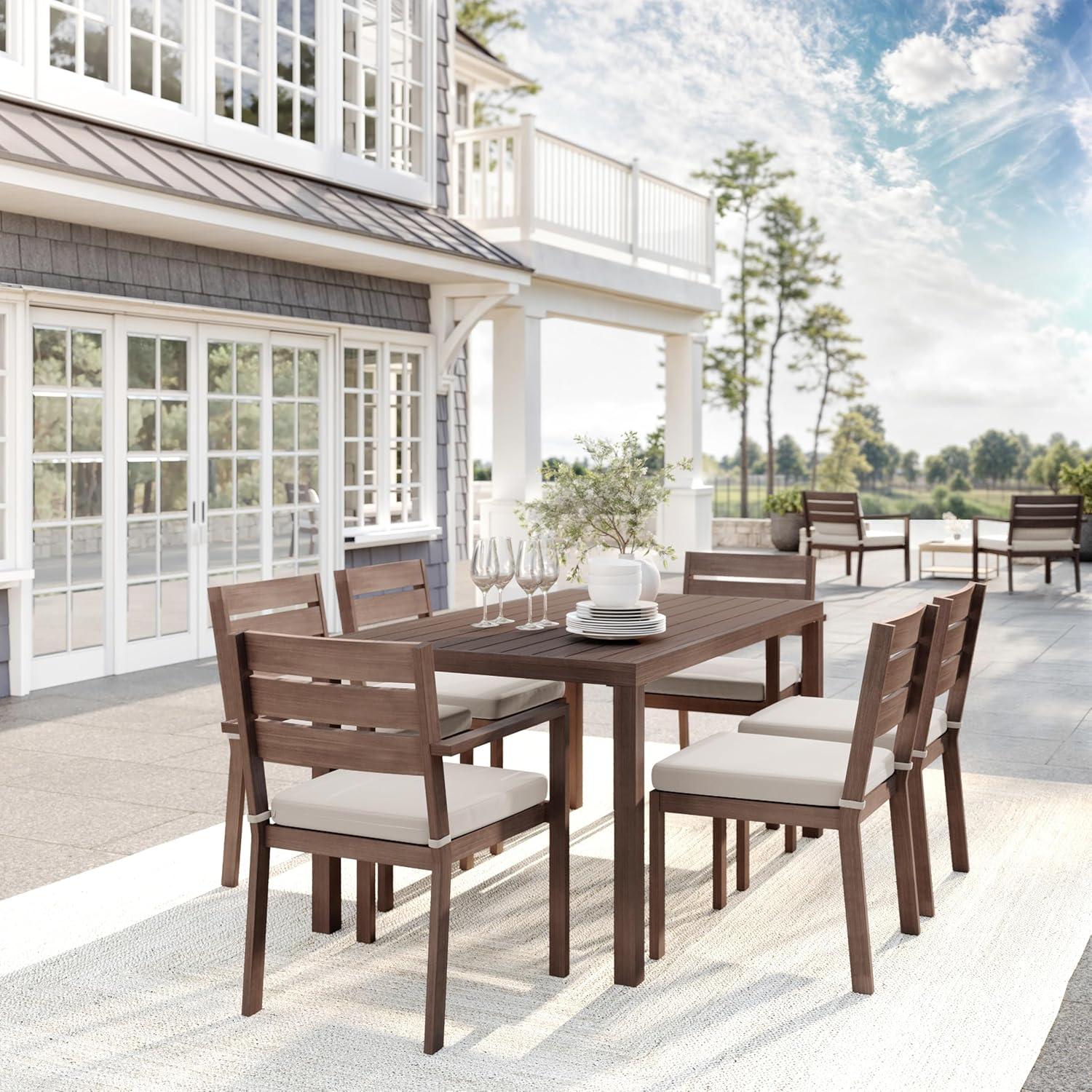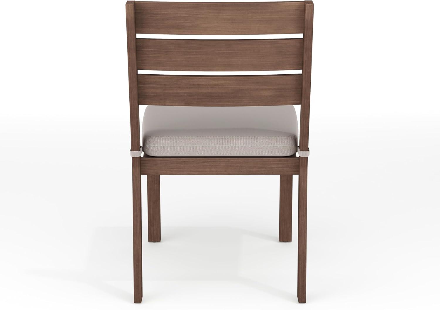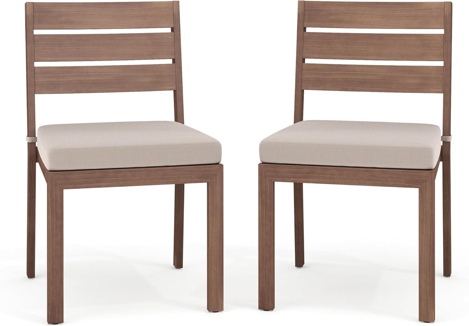 Elevate your indoor-outdoor sanctuary with the set of two Martha Stewart Bedford Patio Side Dining Chairs. Masterfully crafted with durable, rustproof aluminum frames in a beautiful hand-brushed woodgrain finish, these pieces lend elegance to any occasion. All-weather materials and a recommended stack quantity up to eight chairs high deliver peace of mind and welcome convenience by making it easy to store multiple chairs and save space when not in use. The addition of 2.5 thick seat cushions grant gracefully comfortable seating to pair with your morning coffee or a favorite novel. Part of our Bedford collection, these armless chairs pair wonderfully with the coordinating armchairs, accent chairs, barstools, and dining tables, perfect for crafting a custom collection that fits your entertaining needs. Arriving conveniently ready for use and requiring only minimal maintenance, these dining chairs are a must have for everyday use as well as special occasions.