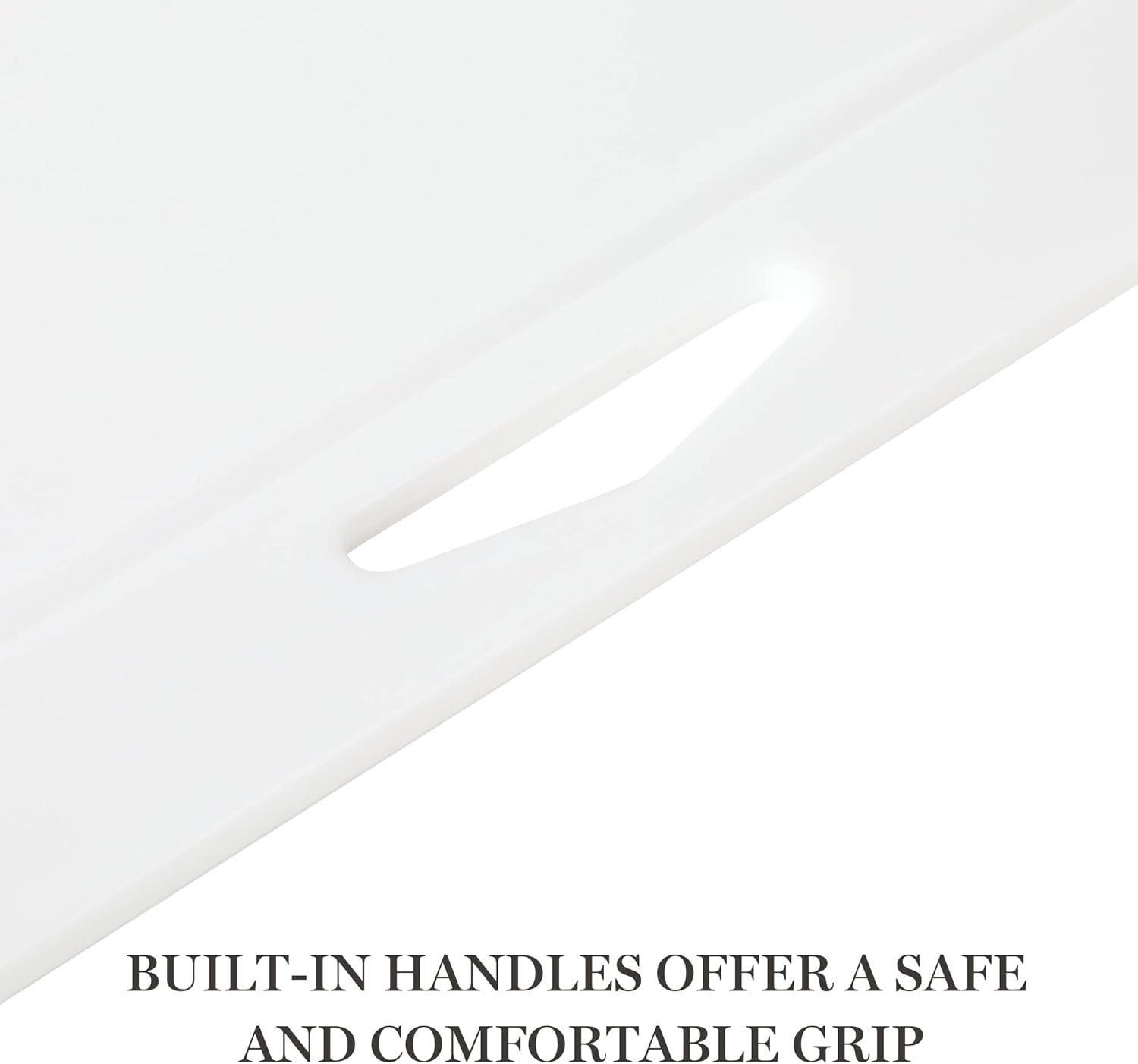 Cutting boards are the place where ingredients come to life and start to become meals. The Martha Stewart 2-piece Kitchen Prep Cutting Board Set provides safety and durability by offering two cutting boards to use for meat, fish, and other ingredients. This set helps home chefs organized in the middle of a busy kitchen and avoid cross-contamination when handling raw food. The wide and sturdy surface is gentle on all kinds of knives and does not dull the blades. For easy lifting and transport, grab the built-in handles that offer a comfortable and confident grip. Dishwasher safe.