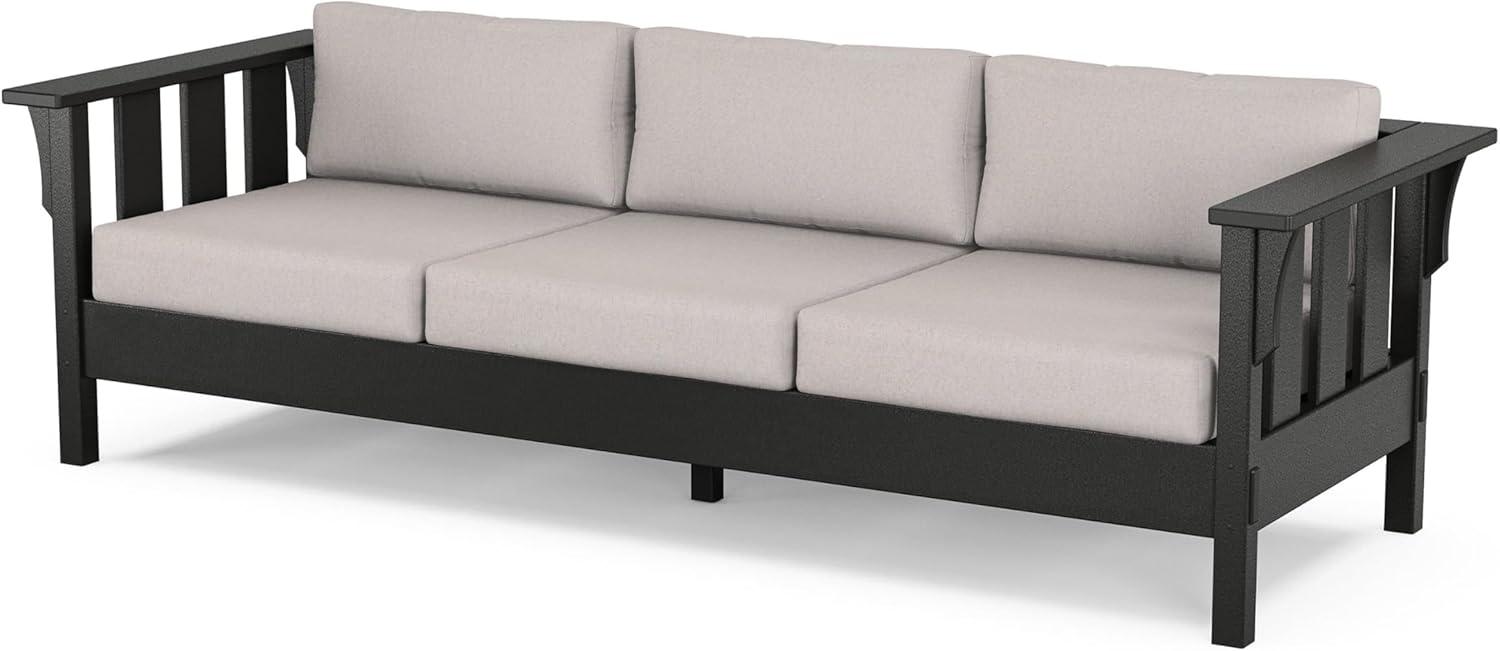 The Martha Stewart by POLYWOOD Acadia 4-Piece Deep Seating Set with Sofa celebrates a return to the forms of Craftsman furniture, defined by strong vertical lines that lend a subtle sense of grandeur. Decorative details emulate traditional woodworking joinery. This all-weather collection was inspired by pieces at Martha Stewart's residence in Maine, a bucolic beauty built in the 1920s.