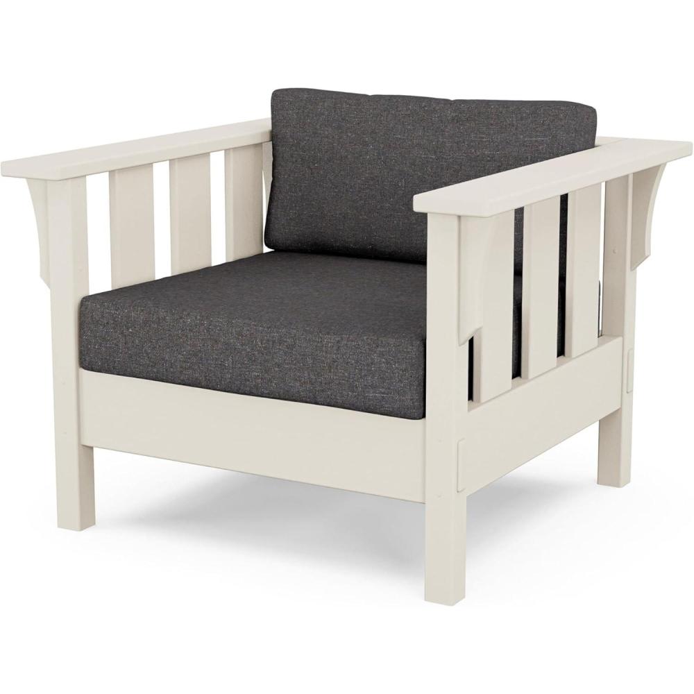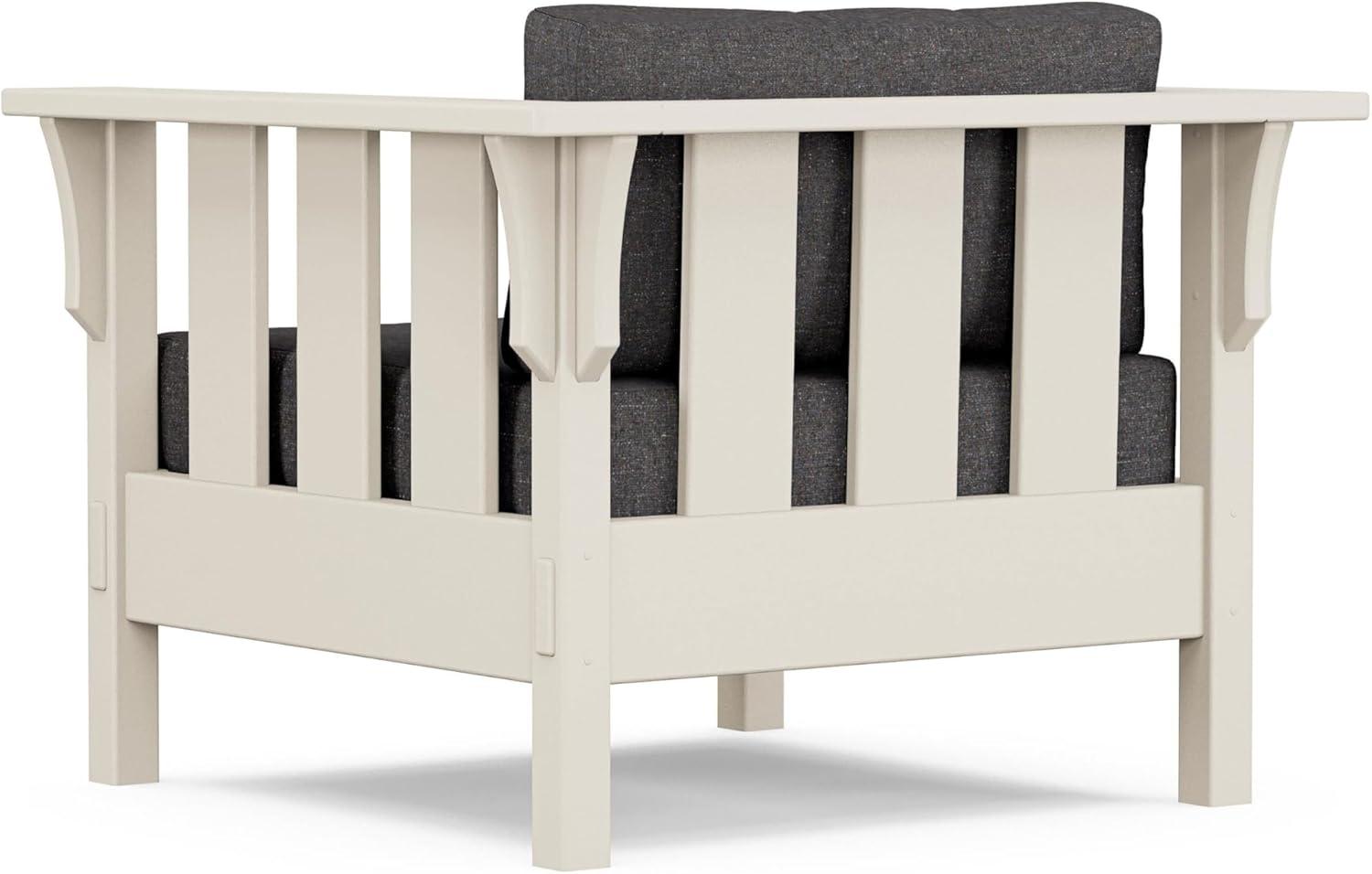 The Martha Stewart by POLYWOOD Acadia Deep Seating Chair is a return to the forms of Craftsman furniture, defined by strong vertical lines that lend a subtle sense of grandeur. Decorative details emulate traditional woodworking joinery. This all-weather collection was inspired by pieces at Martha Stewart's residence in Maine, a bucolic beauty built in the 1920s.