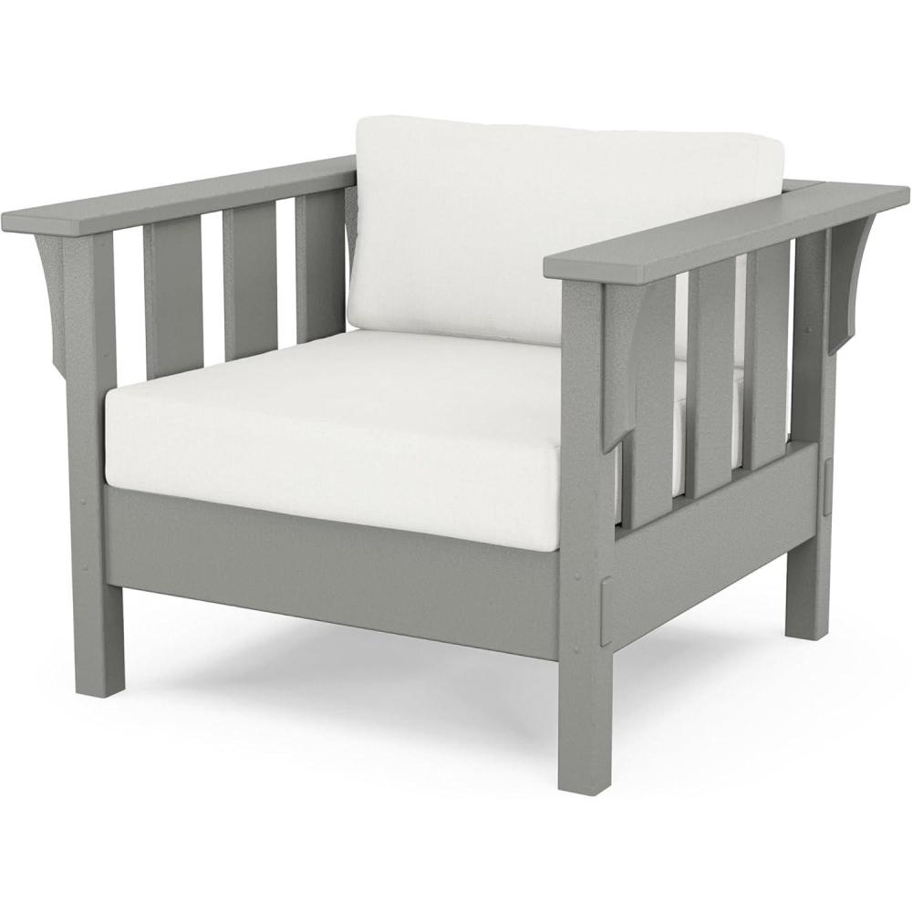 The Martha Stewart by POLYWOOD Acadia Deep Seating Chair is a return to the forms of Craftsman furniture, defined by strong vertical lines that lend a subtle sense of grandeur. Decorative details emulate traditional woodworking joinery. This all-weather collection was inspired by pieces at Martha Stewart's residence in Maine, a bucolic beauty built in the 1920s.